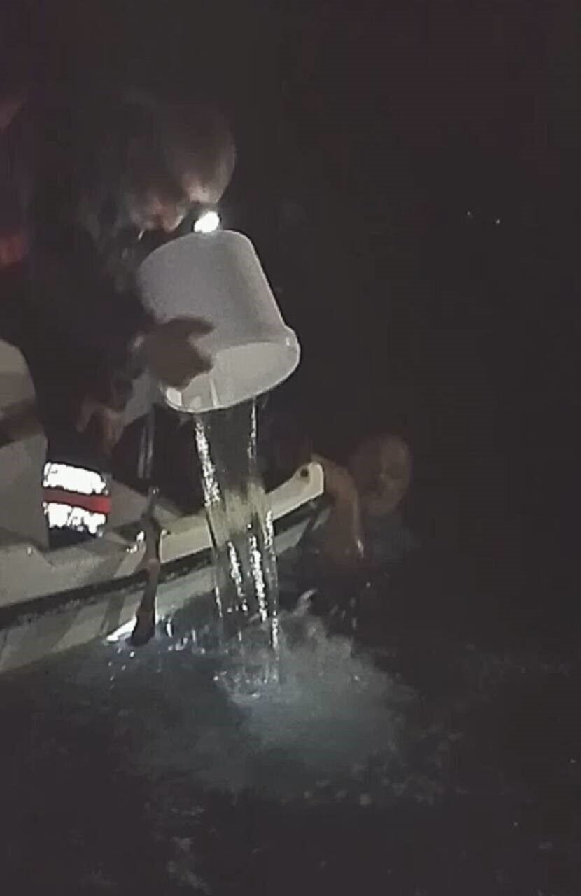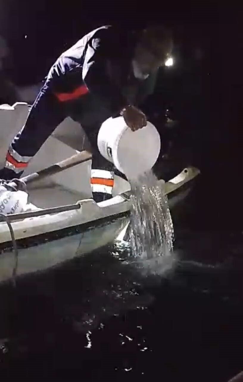 Önce denize düşen balıkçıların güvenliği alındı, ardından su alıp batmaya devam eden tekneye halat bağlanıp yüzeye çıkarıldı. Diğer balıkçı teknelerine halatla sabitlenen 3 metrelik teknedeki su, kova yardımıyla boşaltıldı, halat bağlanarak kıyıya çıkarıldı. Yaşananlar ise amatör balıkçıların cep telefonu kameralarına yansıdı.