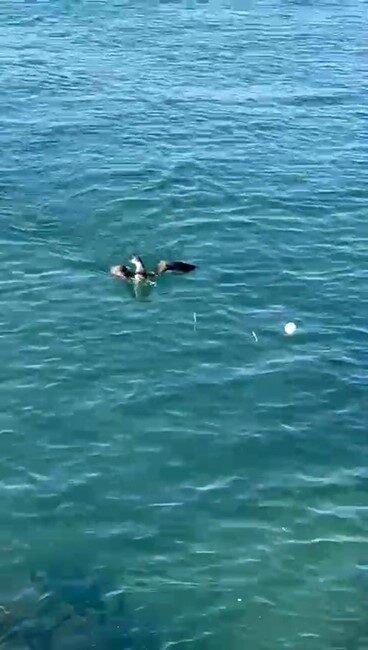 Amatör balıkçının oltasına martı takıldı: İlginç anlar kamerada