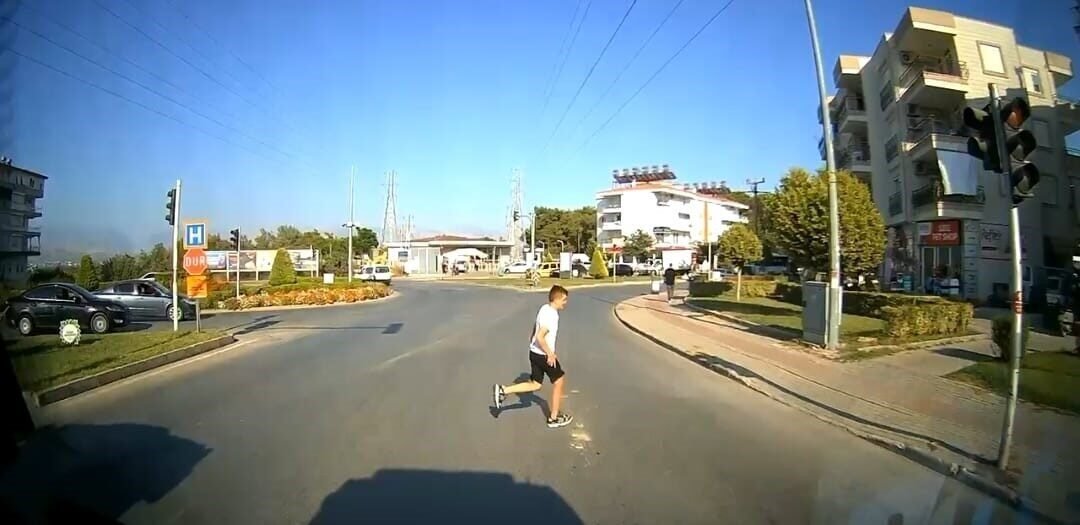 Antalya’nın Manavgat ilçesi Sarılar Mahallesi Muhittin Ersoy Bulvarı üzerinde hasta taşıyan ambulans, kavşakta ters yönden gelen otomobili fark eden şoförün ani manevrası ile kazadan kıl payı kurtuldu. Aynı dakikalar içinde kırmızı ışıkta bekleyen araçların arasından geçen ambulans sürücüsü, yola aniden yayayı da fark ederek hızını düşürdü. Bu sayede yayaya çarpmaktan da son anda kurtulan ambulans şoförü, hem hastayı güvenle hastaneye ulaştırdı ve oluşabilecek iki ayrı kazayı engelledi.