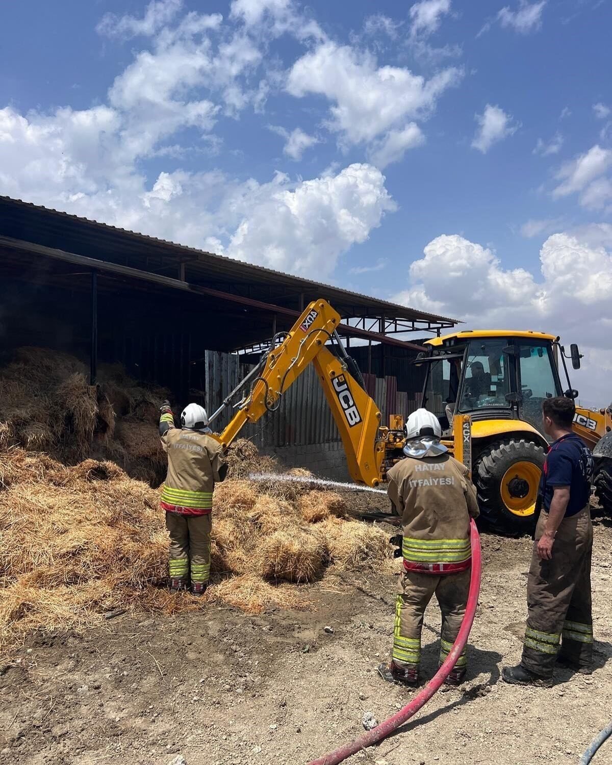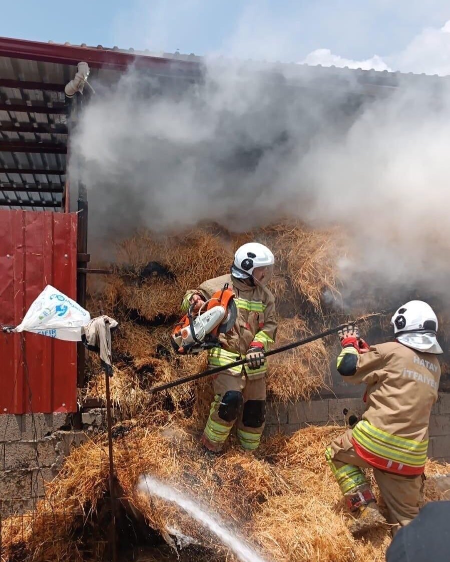 Hatay’da samanlıkta çıkan yangın, besiye sıçramadan söndürüldü.
