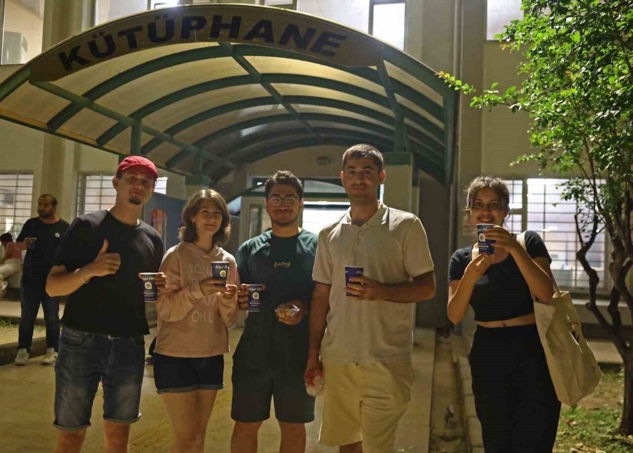 Kütüphanede akşamları ders çalışan öğrencilerin sıcak çorba ile içleri ısınırken, bir süre derse mola verme imkanı sağlanıyor. Sınav haftası olan 26 Mayıs-4 Haziran tarihleri arasında öğrencilere mercimek, tarhana, ezogelin ve domates çorbası ikramı devam edecek.