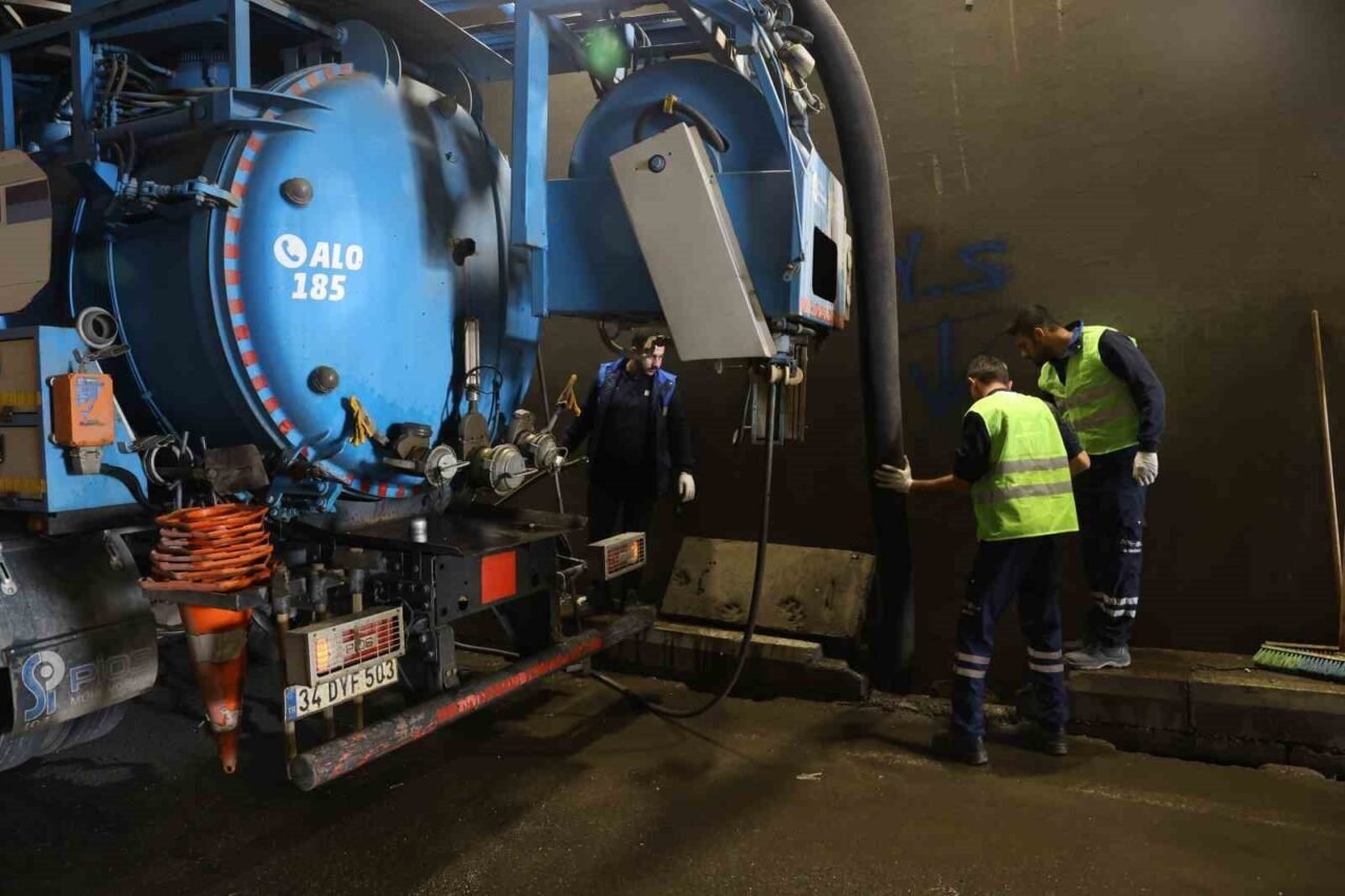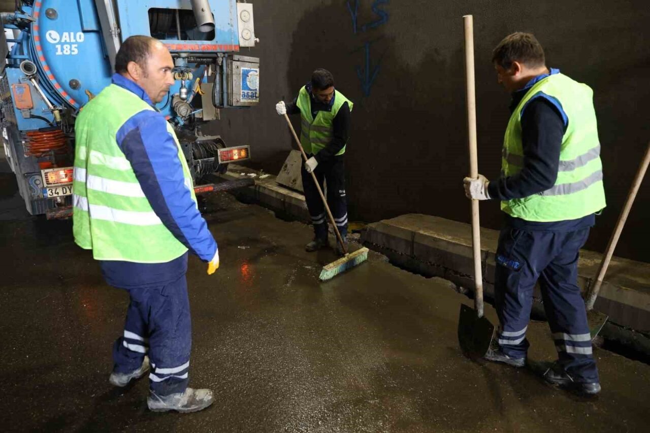Kuvvetli yağış beklenen Antalya’da belediye ekipleri alt geçitlerde mazgal ve kanal temizliği yaptı.