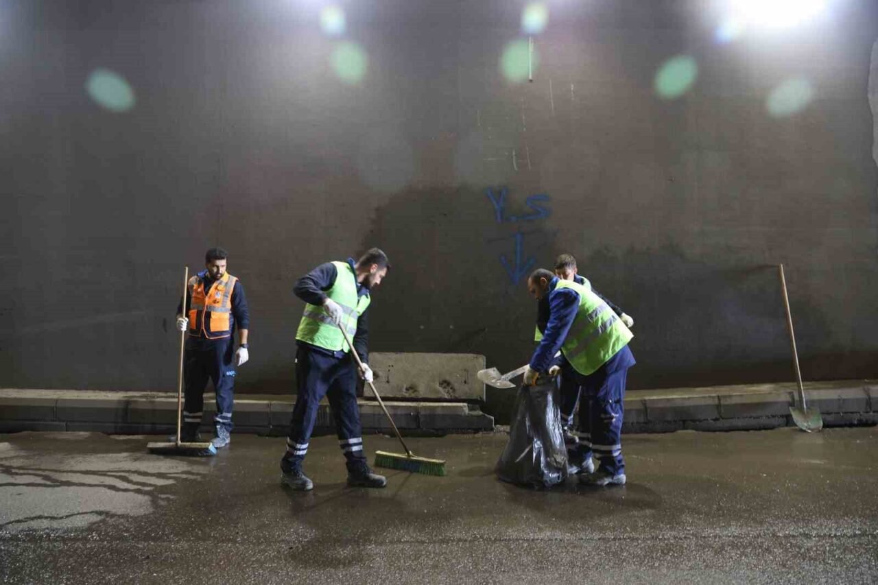 Kuvvetli yağış beklenen Antalya’da belediye ekipleri alt geçitlerde mazgal ve kanal temizliği yaptı.