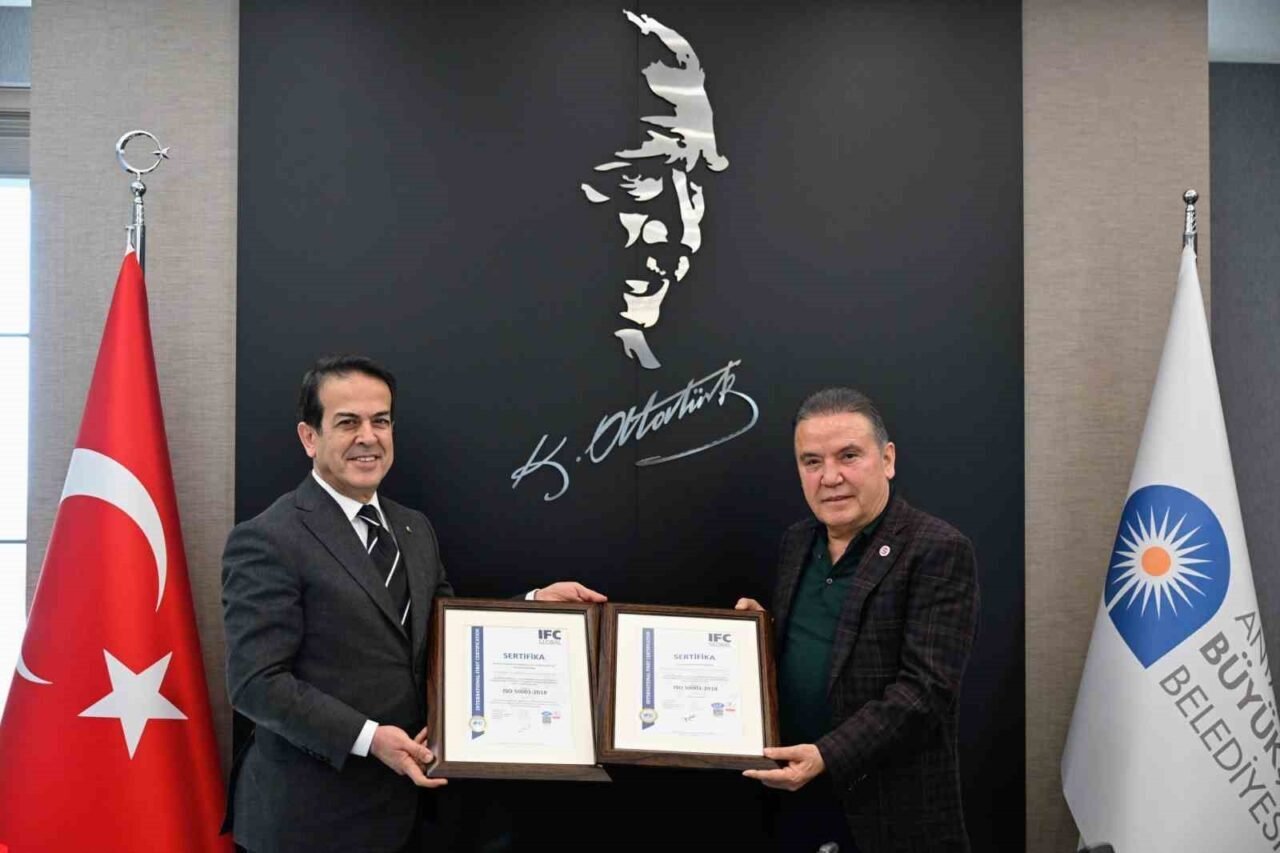 Antalya Büyükşehir Belediyesi, enerji verimliliği ve çevreye duyarlı yönetim anlayışıyla önemli bir başarıya daha imza attı. Antalya’da ISO 50001 Enerji Yönetim Sistemi standartlarını uygulayan ilk belediye olan Antalya Büyükşehir Belediyesi ve ASAT Ana Hizmet Binası, Enerji Yönetim Sistemi Belgelerini almaya hak kazandı. Belgeler, Enerji Verimliliği Haftası kapsamında Başkan Muhittin Böcek’e takdim edildi.