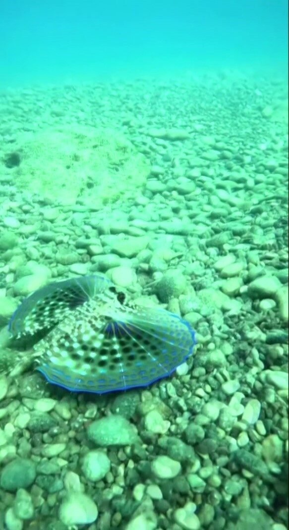 Deniz tavşanının görüntüleri kayıt altına alan Akdeniz Yunus Dalış Merkezi’nde dalış eğitmeni olarak görev yapan İbrahim Sunduvaç ise, “Aslında bakmasını bildiğinizde deniz binlerce canlıyla dolu. Biraz daha yakından bakabilmek için dalış yapabilmek lazım. Yüzerken bunu fark edemiyoruz. Ama dalış yaptığımızda biraz daha çeşitlilik artıyor. Biraz daha dikkatli bakarsak deniz tavşanları var. Çok küçük canlılardır deniz tavşanları, rengarenktir, onları görüyoruz. Son dönemlerde vatoz geliyor, kırlangıç balığı gibi çeşitli balıklarla karşılaşıyoruz. Kırlangıç balığı bölgemizde bulunuyor, çok nadiren denk geliyor. Çok güzel bir canlı, kanatlarını açtığında rengarenk bir görüntü sunuyor bize. Kameramız yanımızdaysa çok rahatsız etmeden görüntüsünü çekiyoruz. Deniz tavşanının aynı şekilde yakından çekilmiş bir görüntüsü bulunuyor” şeklinde konuştu.