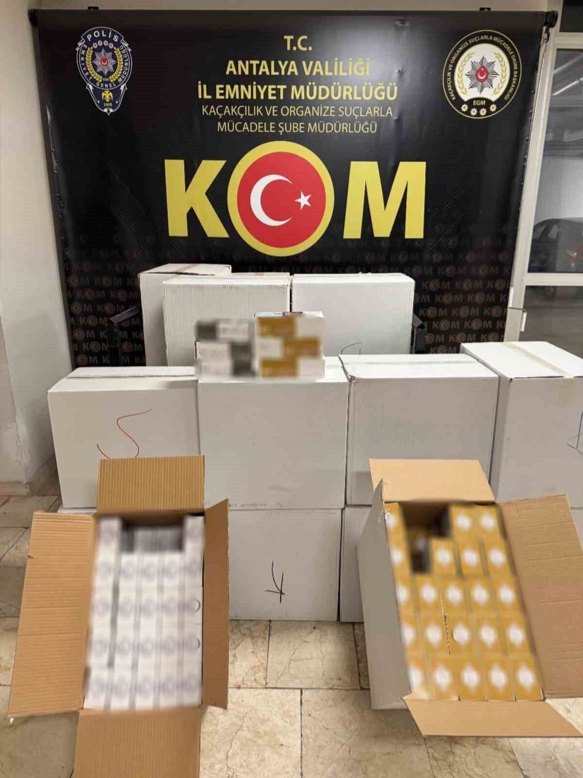 Kepez, Muratpaşa, Alanya ve Manavgat ilçelerinde yapılan operasyonlarda; 1 tabanca, 1 şarjör, 5 tabanca fişeği, 177 kilogram sodyum siyanür, 380 bin adet makaron, 90 bin 591 adet kaçak emtia (elektronik sigara likit ve parçaları), 2000 litre kaçak alkol, 238 adet kaçak elektronik sigara, 48 paket kaçak sigara, 20 kilogram kaçak tütün ve 11 adet kaçak cep telefonu ele geçirildi.