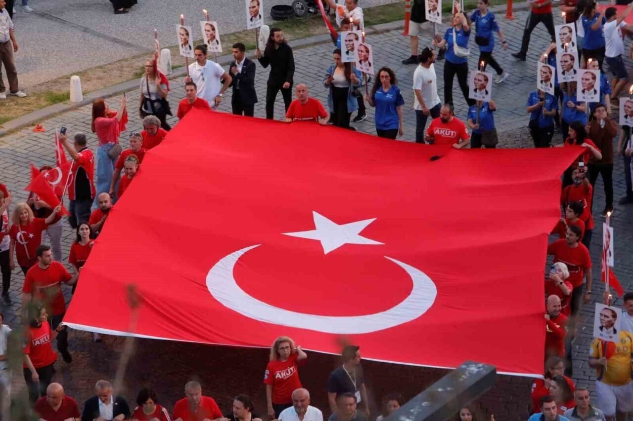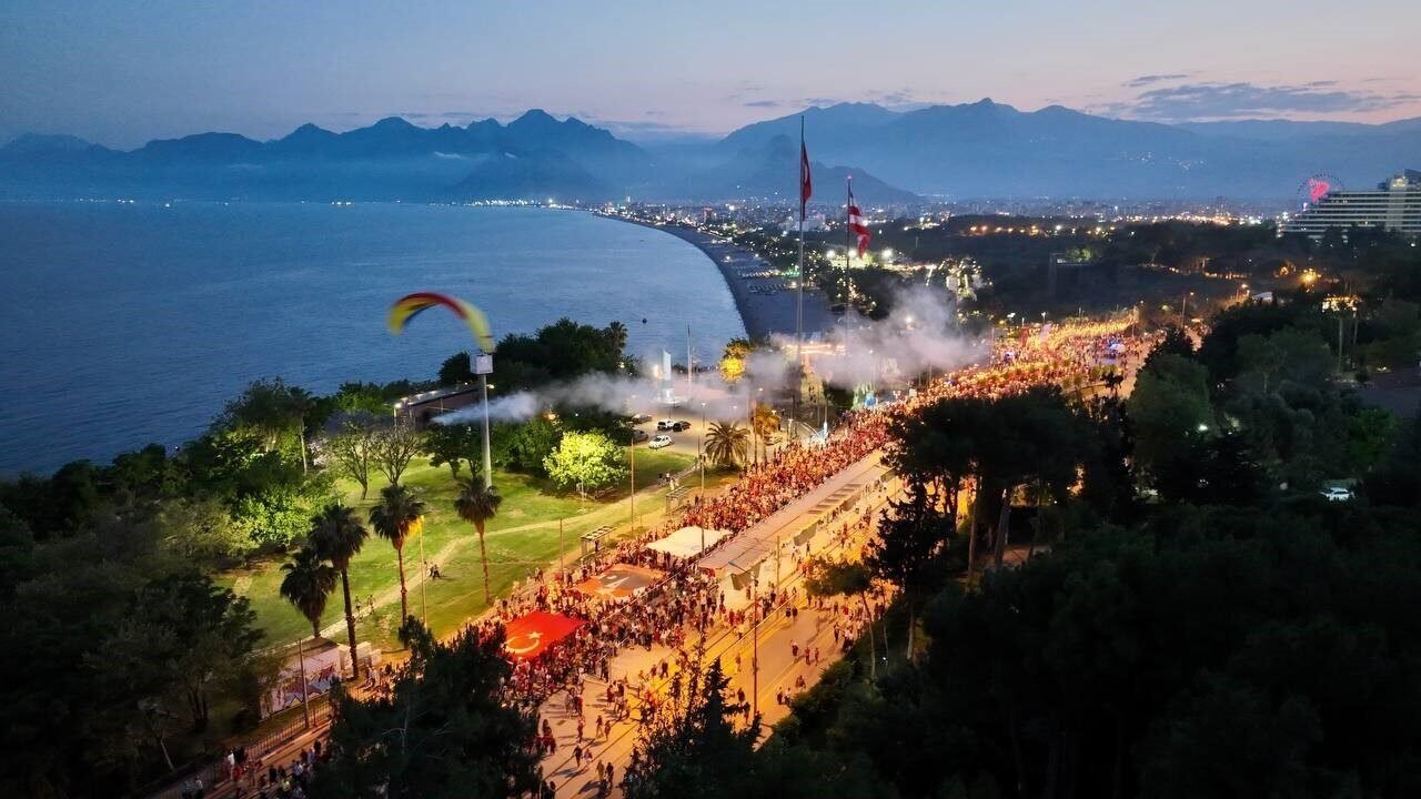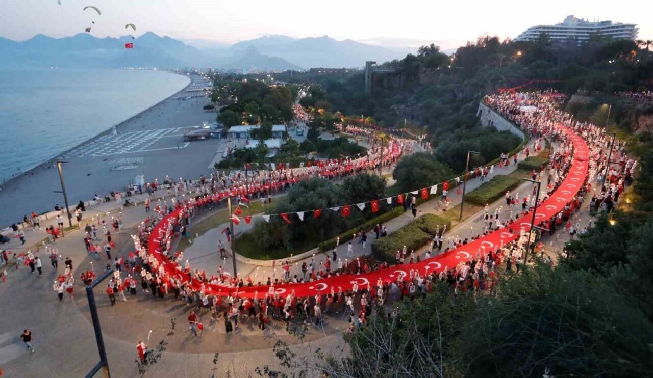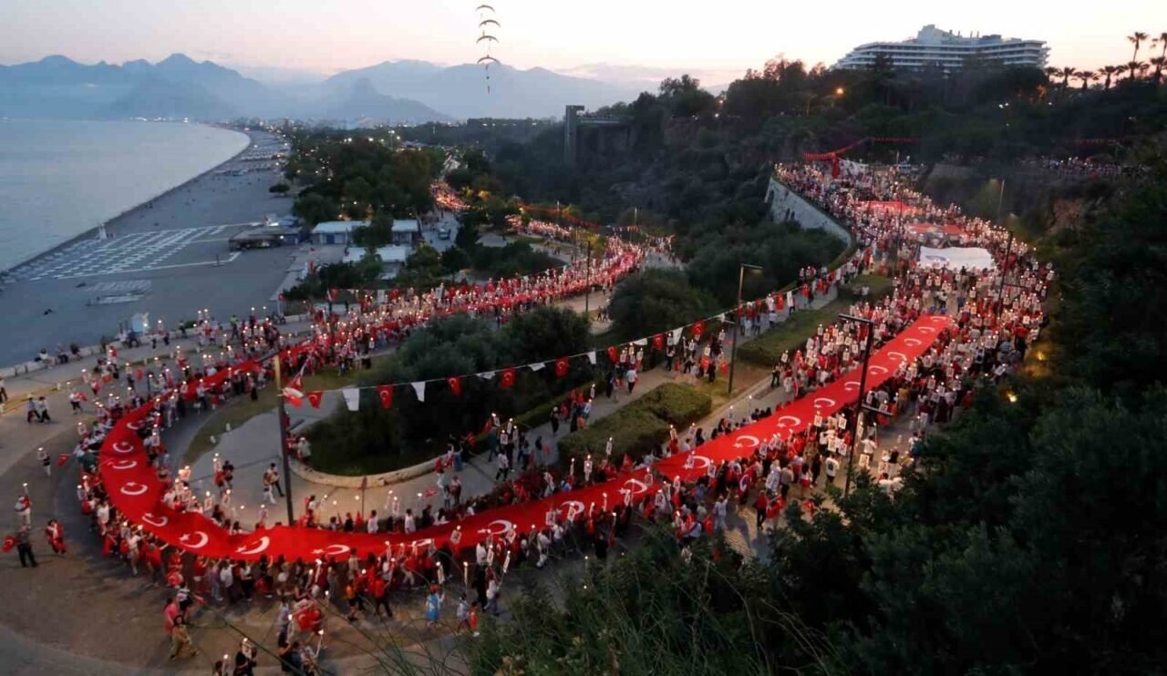 Antalya’da 400 metrelik dev Türk bayrağı ile ’Fener Alayı’ düzenlendi