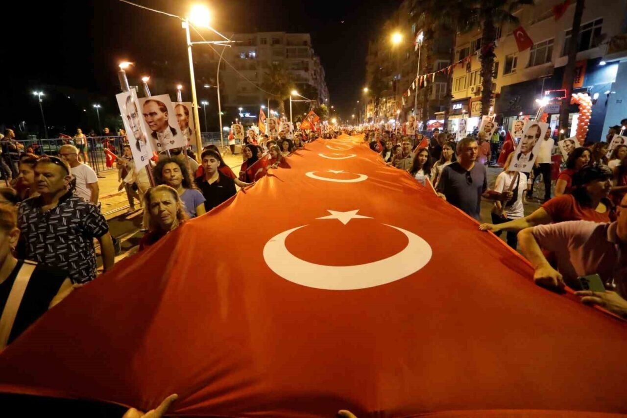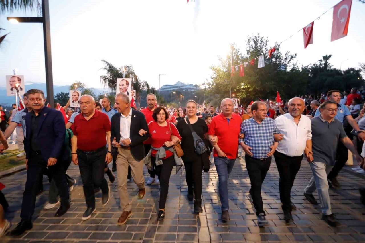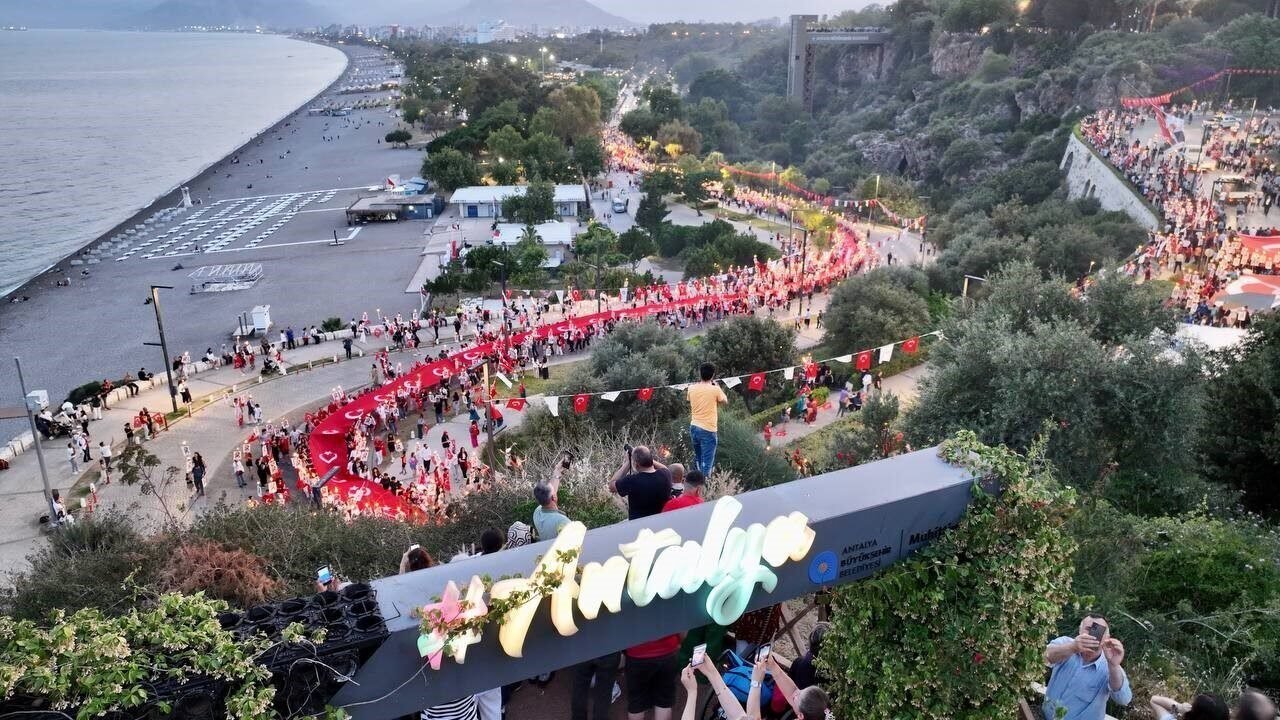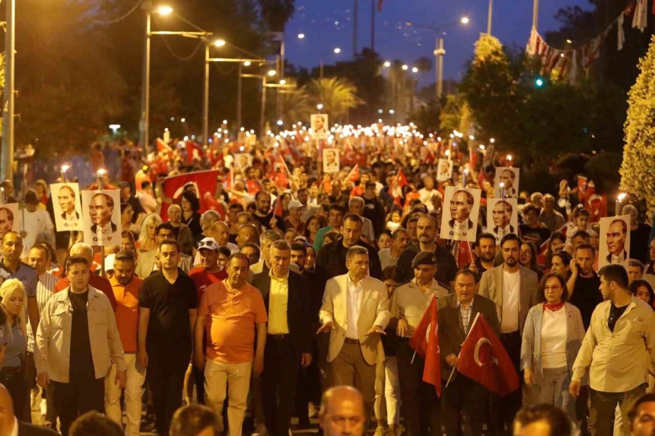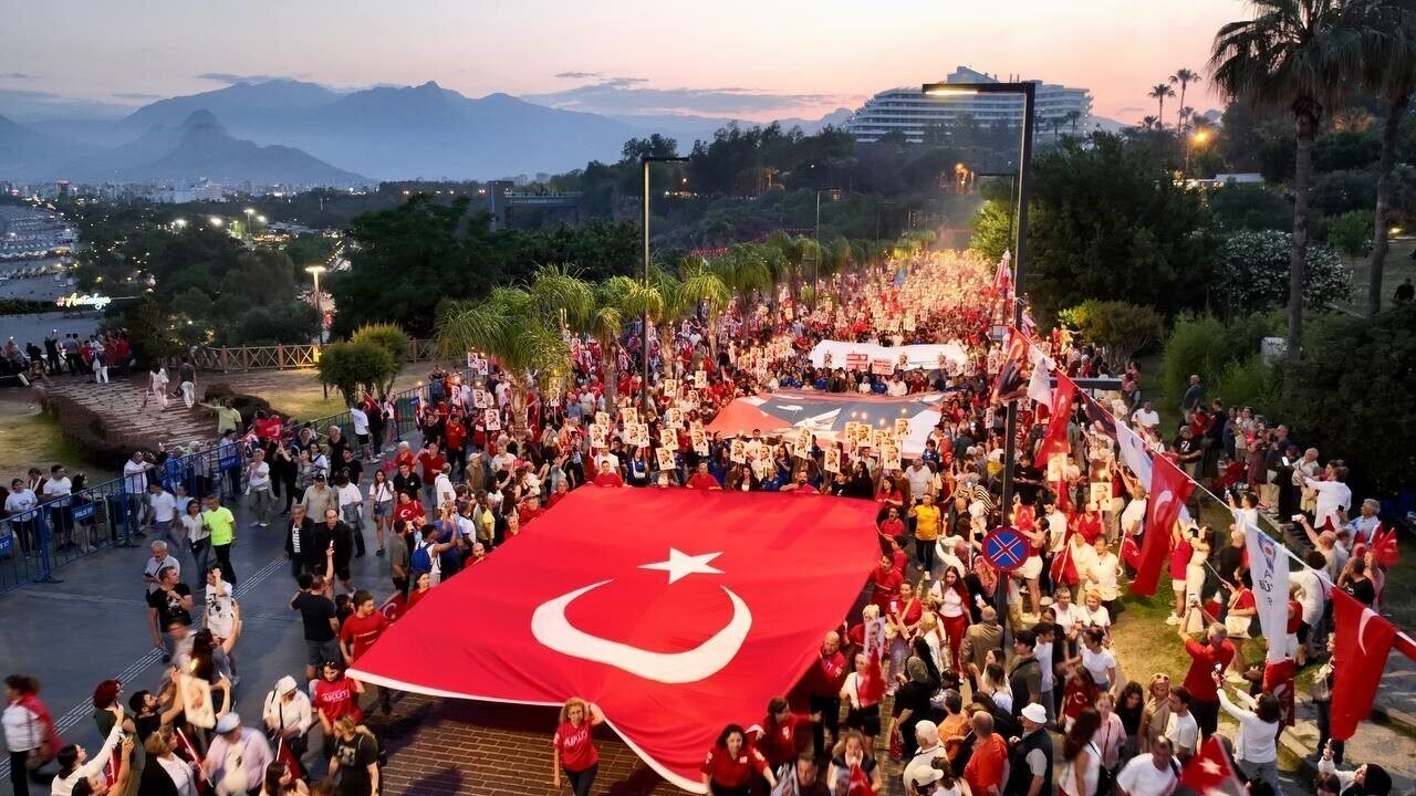 Binlerce kişi akşam saatlerinde ellerinde Türk bayrakları ve Atatürk fotoğrafları ile Fener Alayı’nın başlangıç noktası olan Konyaaltı Varyant’ta toplanmaya başladı. Antalya Valisi Hulusi Şahin, Antalya Büyükşehir Belediye Başkanı Muhittin Böcek, 3. Piyade Eğitim Tugay Komutanı Piyade Albay Hüseyin Yılmaz, Muratpaşa Kaymakamı İhsan Kara, STK temsilcileri ve çok sayıda vatandaşın katıldığı yürüyüşte 400 metrelik dev Türk bayrağı taşındı. Fener Alayı’na Türk Hava Kurumu’na bağlı paramotorcular gökyüzünden eşlik ederken, yürüyüş güzergahındaki apartmanların balkonlarındaki vatandaşlar da alkışlarıyla destekledi. 7’den 70’e binlerce Antalyalı, ellerinde Türk bayraklarıyla sloganlar ve marşlar eşliğinde Cumhuriyet Meydanı’na kadar yürüdü.