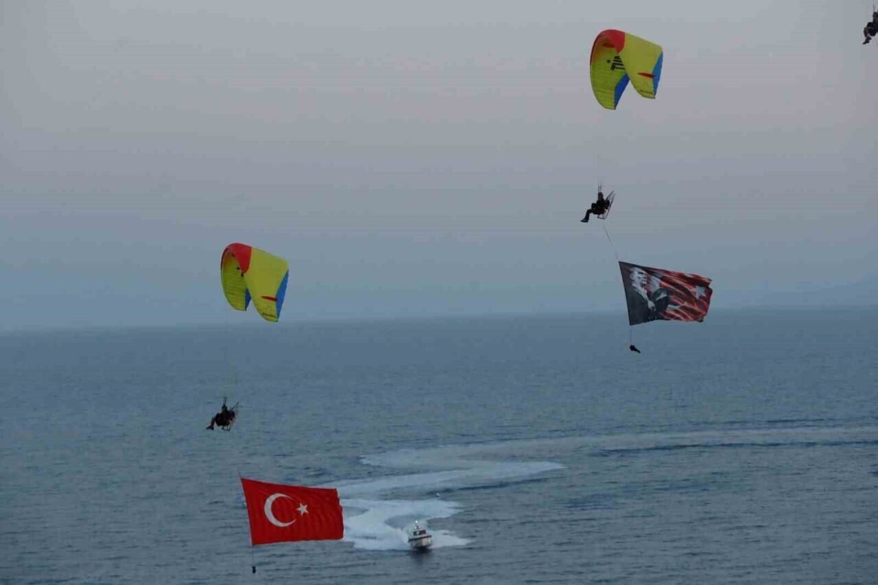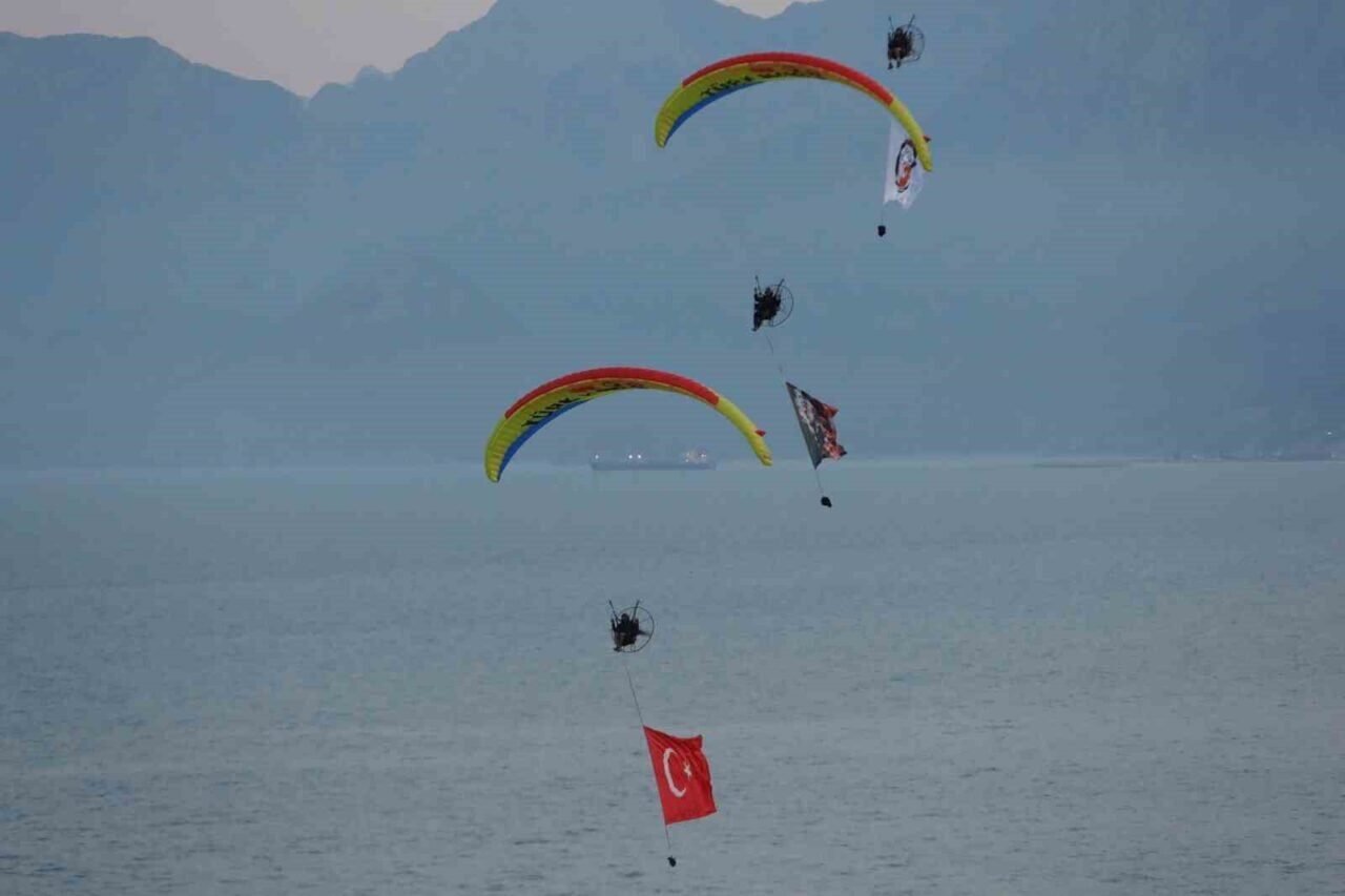 Antalya’da 19 Mayıs Atatürk’ü Anma Gençlik ve Spor Bayramı kutlamalarında binlerce vatandaşın katılımı ile düzenlenen Fener Alayı’nda 400 metrelik dev Türk bayrağı taşındı. Fener Alayı’na paramotorcular da gökyüzünde eşlik etti.