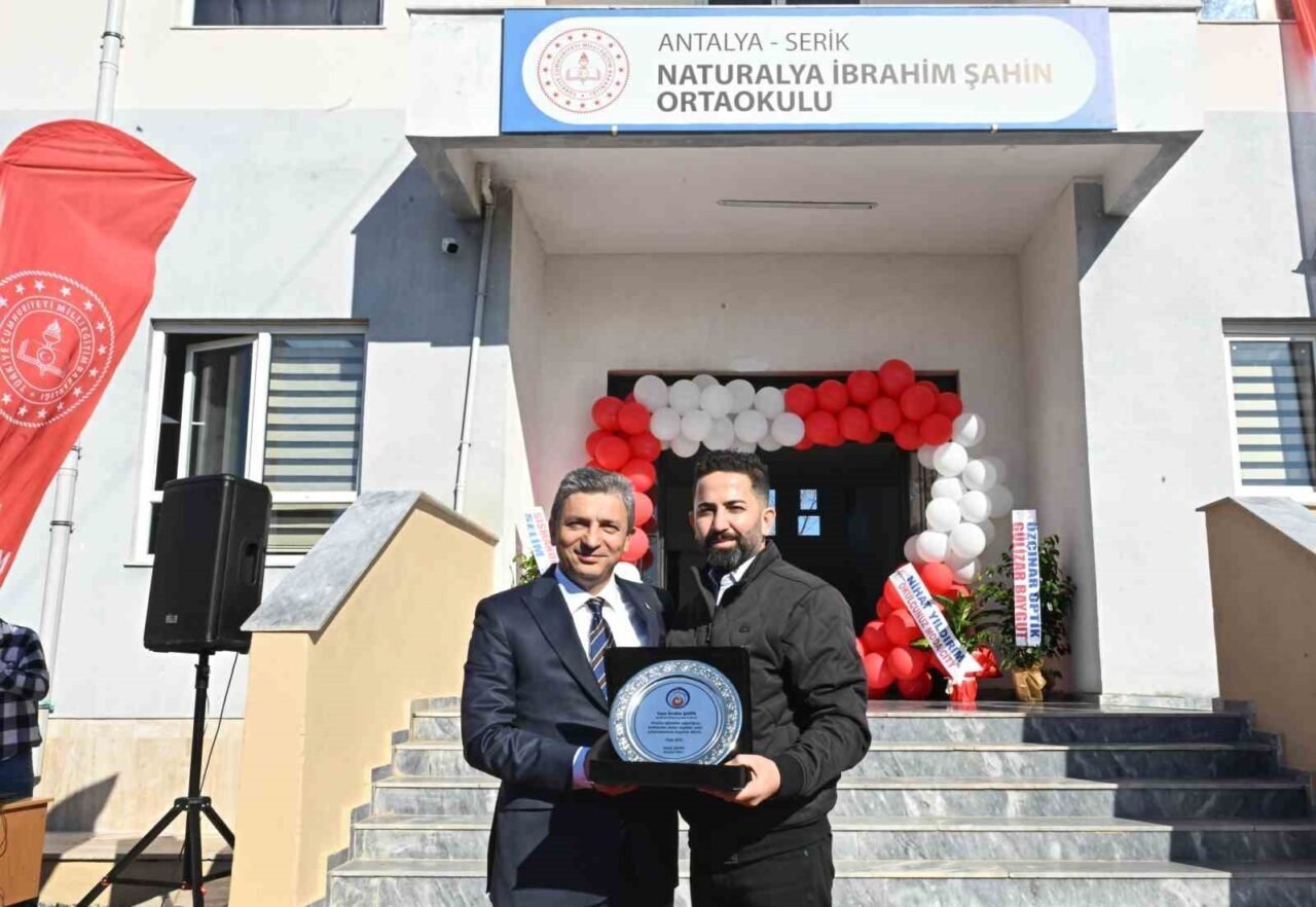 NATURALYA İBRAHİM ŞAHİN ORTAOKULU’NDA DÜZENLENEN 2024-2025 EĞİTİM-ÖĞRETİM YILI İLK DÖNEMİNİN KARNE DAĞITIM TÖRENİ’NE KATILAN ANTALYA VALİSİ HULUSİ ŞAHİN, OKULUN BAKIM VE YENİLEME ÇALIŞMALARINA SAĞLADIĞI KATKILARDAN DOLAYI HAYIRSEVER İBRAHİM ŞAHİN’E PLAKET TAKDİM ETTİ.