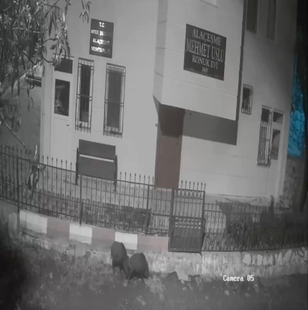 Antalya’nın Akseki ilçesine bağlı Alaçeşme Mahallesi’nde yaban domuzları gece yarısı sürü halinde köye indi.