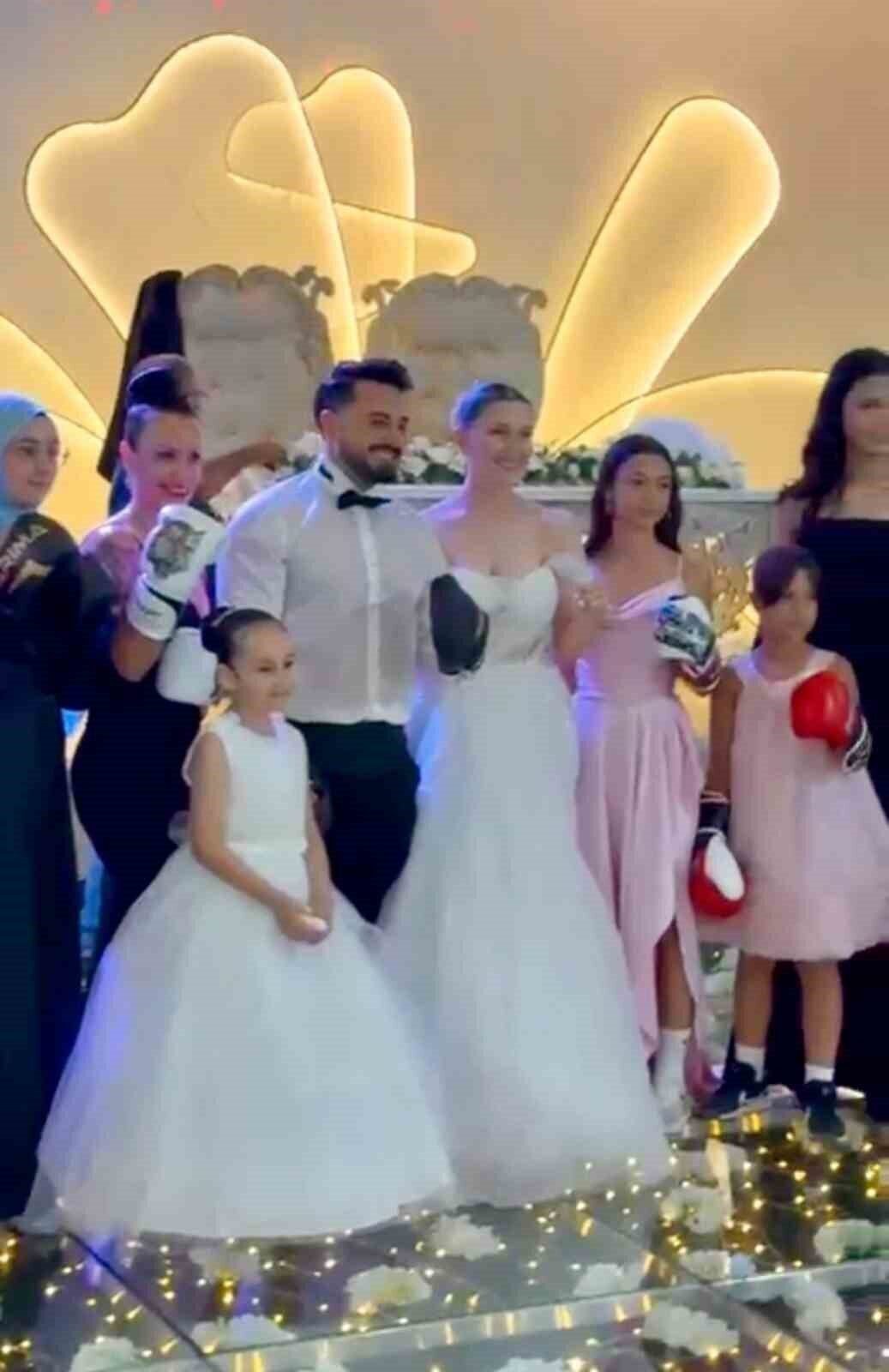 Antalya’da geçtiğimiz ay evlenen Kick Boks Antrenörü ve uluslararası hakem Uğur Erdem ile eşi Eda Erdem’in düğünü, ring atmosferini aratmayan bir sürprize sahne oldu. Oyun havası eşliğinde dans eden çift, bir anda boks eldivenleri takmış öğrencilerinin çevrelerini sarmasıyla şaşkınlık yaşadı. Düğüne katılan öğrenciler, bu özel güne özenle hazırlanarak geldi. Kadın öğrenciler topuklu ayakkabıları, erkek öğrenciler ise şık kıyafetleriyle düğün salonuna girerek, antrenörlerine unutulmaz bir anı bıraktı. Öğrencilerinin getirdiği lapayı görünce dayanamayan Erdem, damatlıkla teker teker lapa tutarak piste adeta antrenman havası estirdi. Gelin Eda Erdem ise masasına geçerek eşinin gösterisini gülümseyerek izledi. Düğüne katılan davetliler bu anları alkışlarla destekledi.