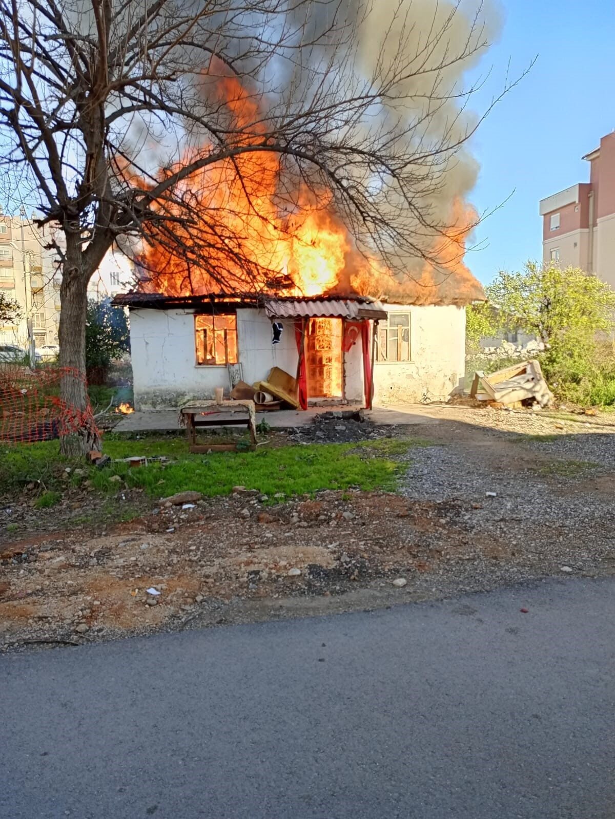 Antalya’da bir gecekonduda çıkan yangın paniğe neden oldu. Alevler kısa sürede tüm yapıyı sararken, yoğun dumanlar gökyüzünü kapladı. Yangın sırasında evde kimsenin bulunmadığı anlaşılırken tek katlı bina tamamen yanıp kullanılmaz hale geldi.