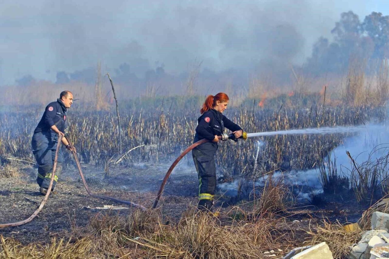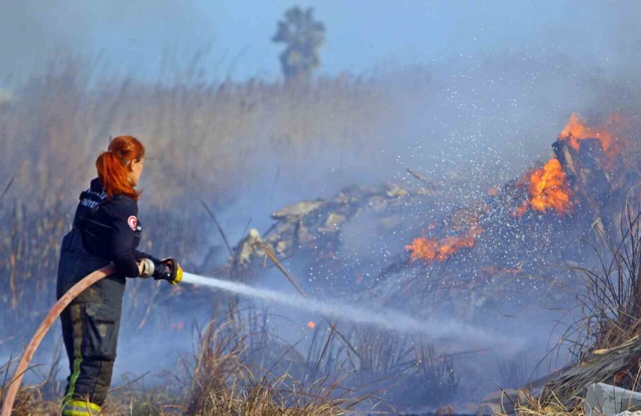 Antalya’da ev ve seraları tehdit eden sazlık yangını 2 saatlik çalışmayla kontrol altına alındı