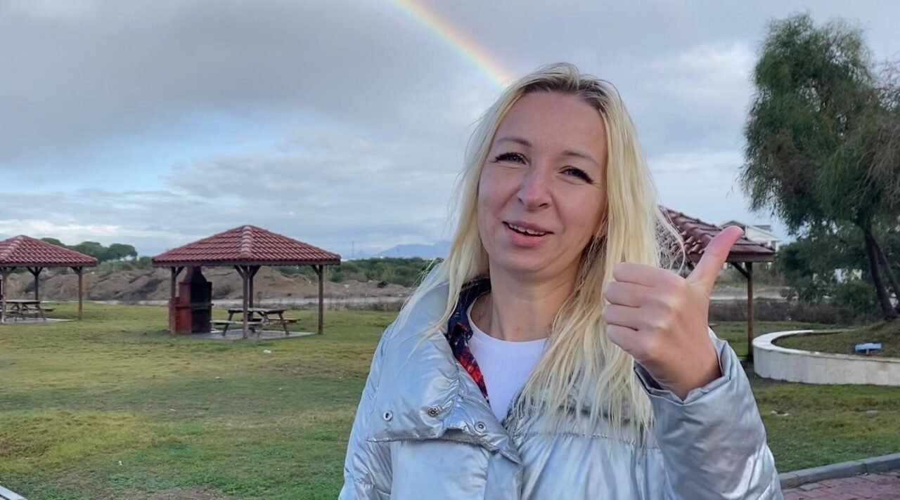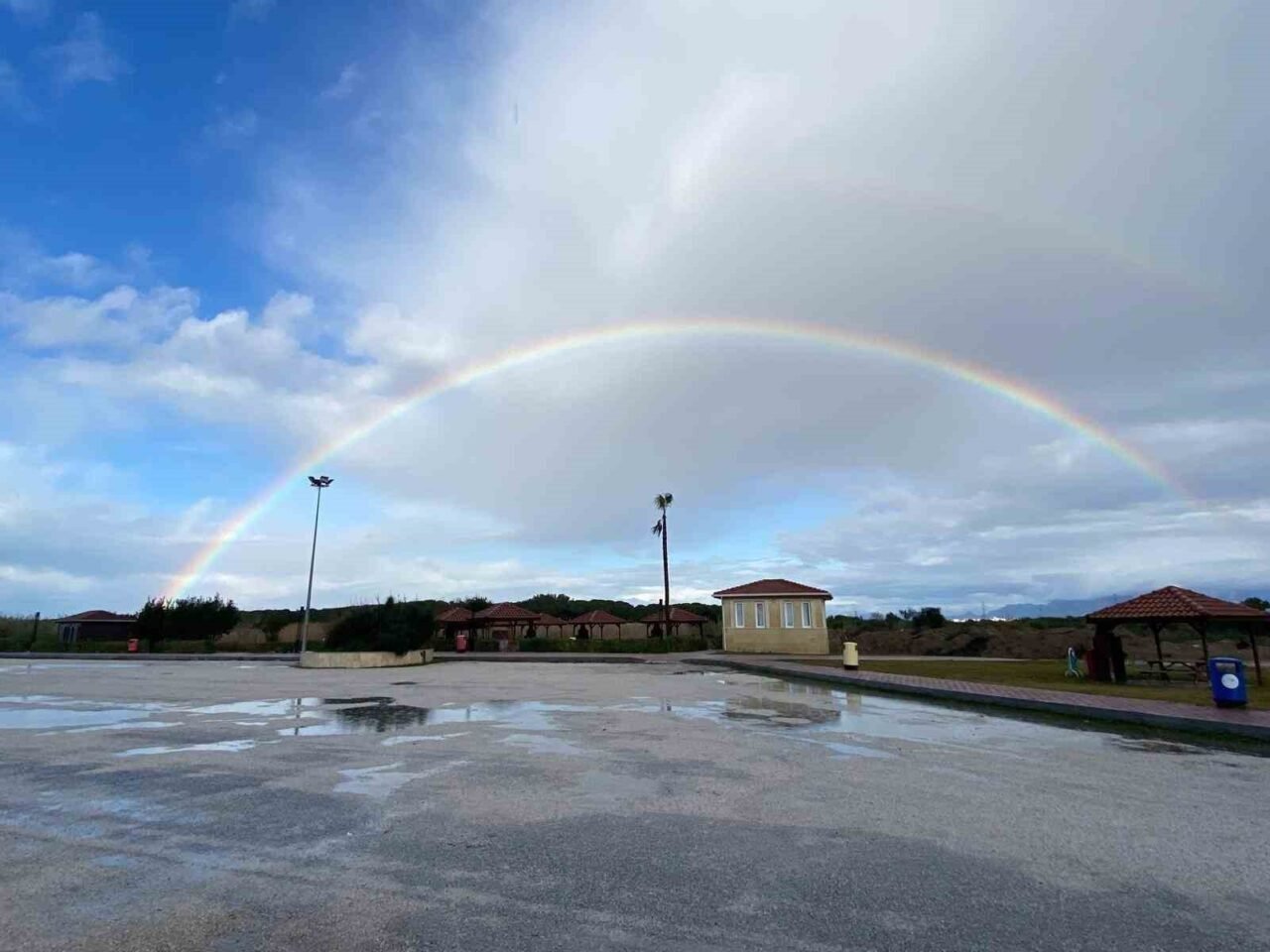 Antalya’nın Serik ilçesinde sabah saatlerinde başlayan yağmur sırasında gökyüzünde oluşan gökkuşağı görsel şölen oluşturdu. Görenlerin hayran kaldığı o anlarda bir turist gökkuşağı kaybolmadan o anları cep telefonu ile kaydetmek için eşinden yardım istedi. İnce ince yağan yağmura aldırış etmeden fotoğraf çekinen ve amacına ulaşan kadın turist ise çektirdiği fotoğraf ile büyük mutluluk yaşadı.