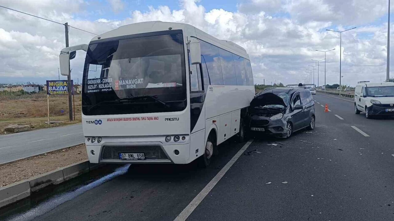 Antalya’nın Manavgat ilçesinde hafif ticari aracın yolcu midibüsüne arkadan çarpması sonucu meydana gelen kazada 1’i ağır 2 kişi yaralandı.