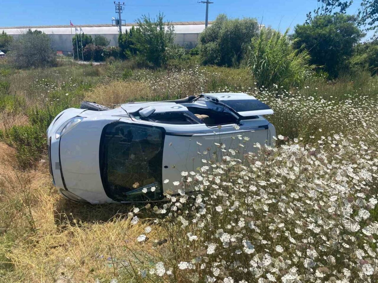 Antalya’nın Serik ilçesinde şarampole devrilen hafif ticari aracın sürücüsü kazayı