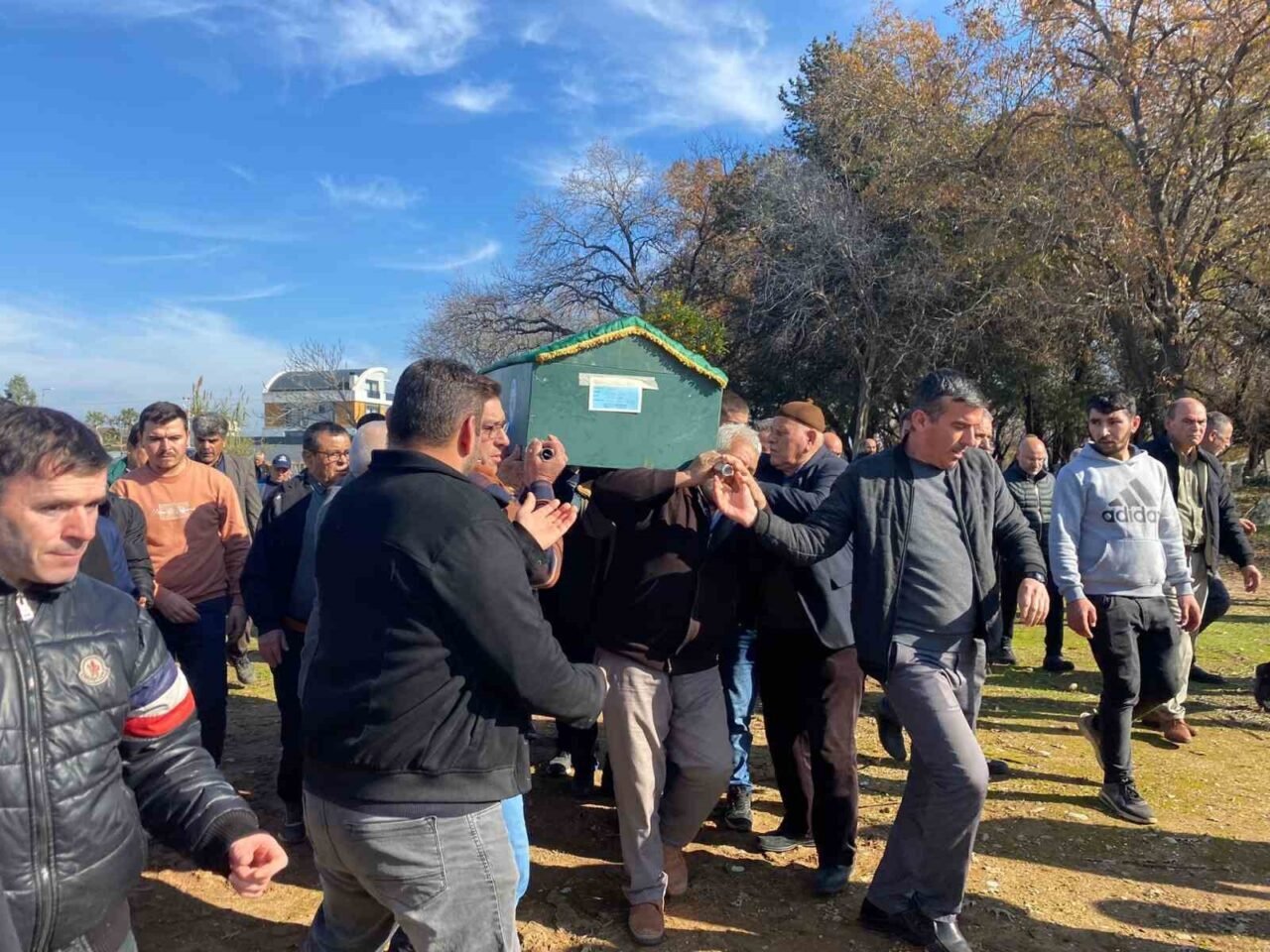 KADRİYE ANDIZLI MEZARLIĞI’NDA DÜZENLENEN CENAZE NAMAZINA BABA RAMAZAN MİŞ’İN (MAVİ ŞAPKALI) YANI SIRA YAKINLARI VE GENCİN ARKADAŞLARI KATILDI.