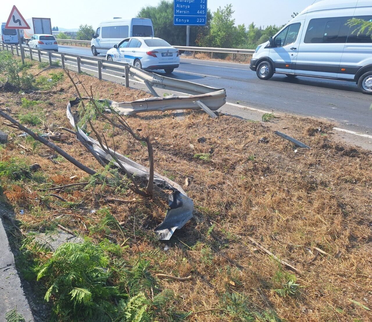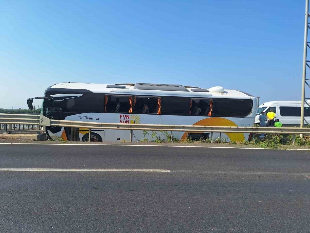 Antalya’nın Serik ilçesinde meydana gelen kazada, kontrolden çıkan tur otobüsü köprüden düşmek üzereyken durabildi. Otobüste bulunan 34 yolcu kazayı yara almadan atlattı.
