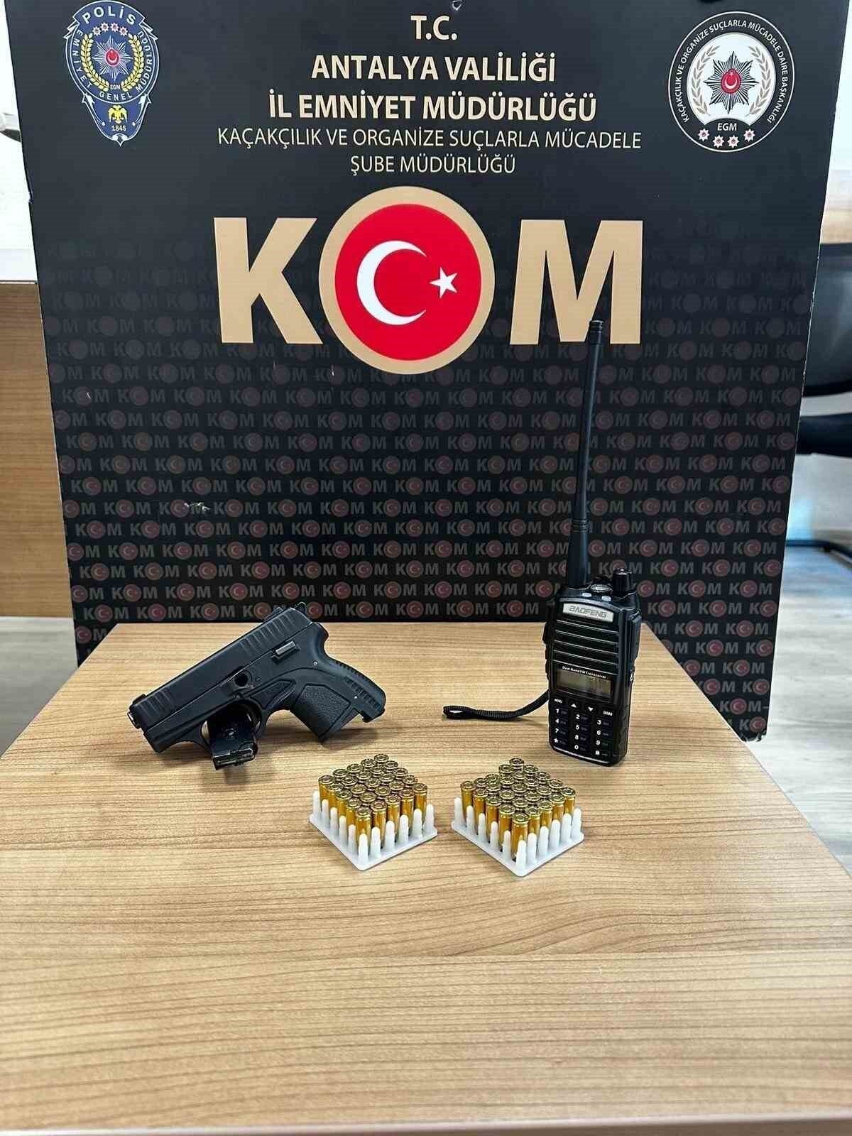 Antalya Emniyet Müdürlüğü Kaçakçılık ve Organize Suçlarla Mücadele (KOM) Şube Müdürlüğü ekipleri, son 1 haftada il genelinde yürüttükleri operasyonlarla kaçakçılık ve organize suçlara yönelik operasyon düzenledi. 6136 ve 5809 sayılı Kanuna Muhalefet kapsamında gerçekleştirilen bir olayda 1 şüpheli hakkında adli işlem yapılırken, aramalarda 1 tabanca, 50 tabanca fişeği ve 1 el telsizi ele geçirildi. 5607 sayılı Kanuna Muhalefet kapsamında düzenlenen 4 ayrı operasyonda ise 10 şüpheli hakkında adli işlem başlatıldı. Kepez, Döşemealtı, Konyaaltı ve Alanya ilçelerinde iş yeri, depo ve ikametlere yönelik aramalarda 2 milyon 285 bin 120 adet makaron, 7 bin 650 litre kaçak içki, 6 bin 160 adet kaçak emtia, 183 kilogram kaçak tütün ele geçirildi. Ayrıca aranan şahıslara yönelik çalışmalarda, kesinleşmiş hapis cezası bulunan 2 kişi yakalanarak cezaevine teslim edildi.
