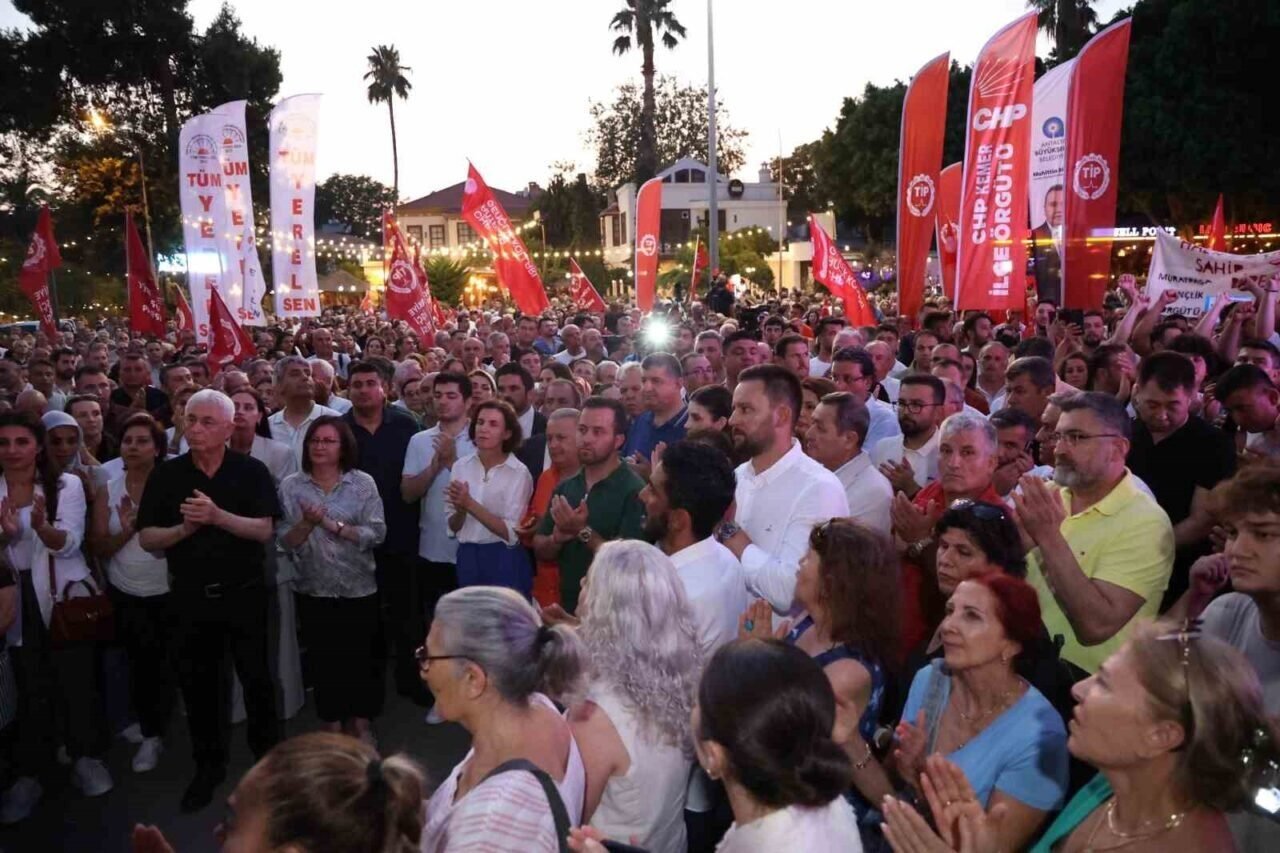 CHP Antalya İl Başkanlığı tarafından, “rüşvet” soruşturması kapsamında tutuklanan Büyükşehir Belediye Başkanı Muhittin Böcek’e destek amacıyla miting düzenledi.