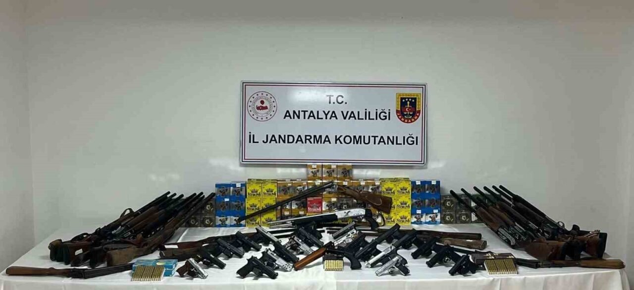 Antalya’da gerçekleştirilen çalışmada ruhsatsız 22 tabanca, 19 av tüfeği ve çok sayıda fişek ele geçirildi.