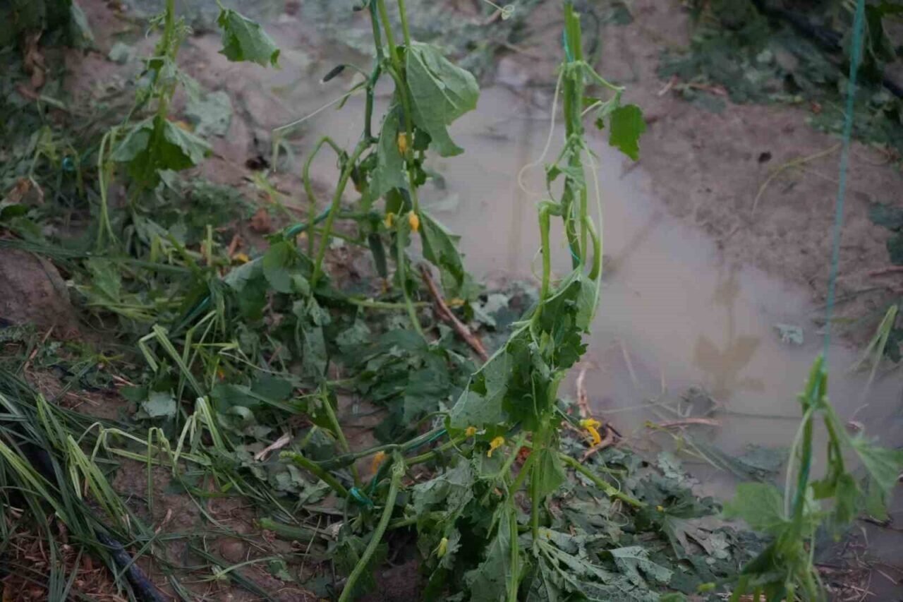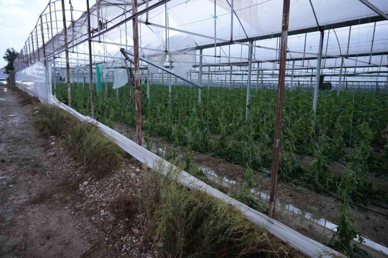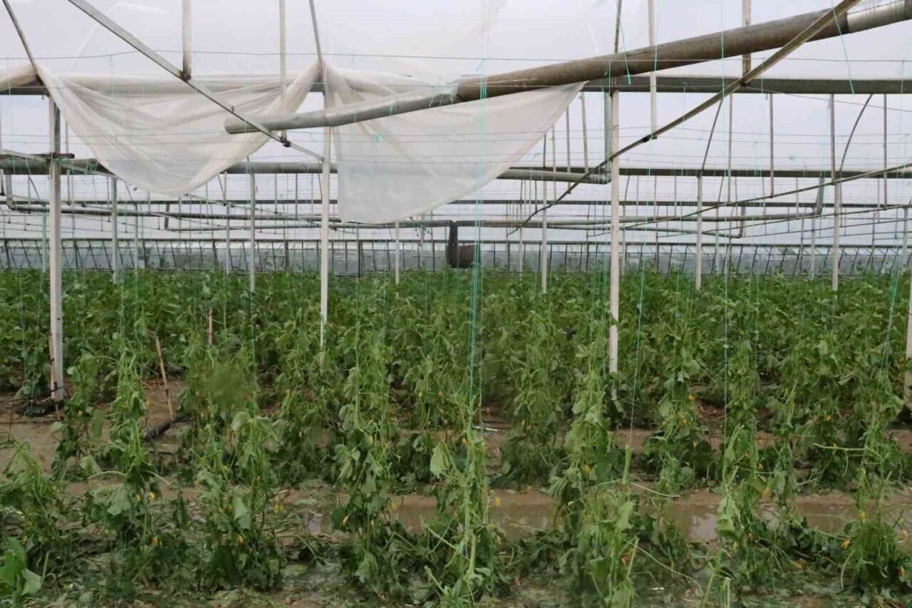 Sağanakla birlikte kısa süreli etkili olan dolu, çok sayıda serada hasara yol açtı. Rüzgar nedeniyle bazı seraların çatısı uçarken, seralardaki ürünler de zarar gördü.