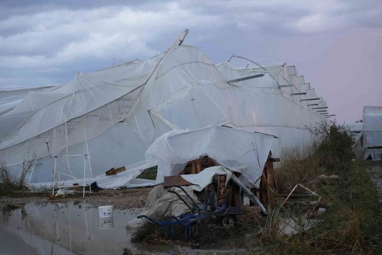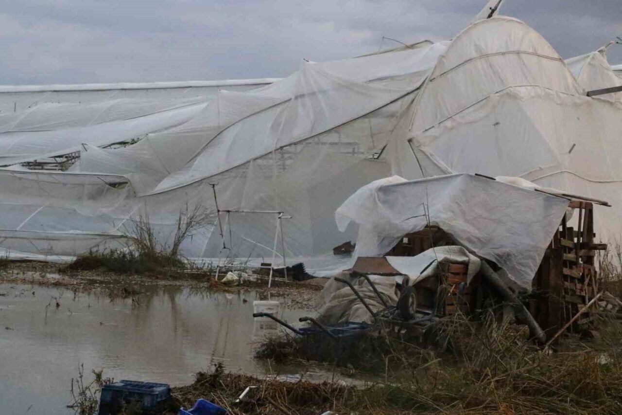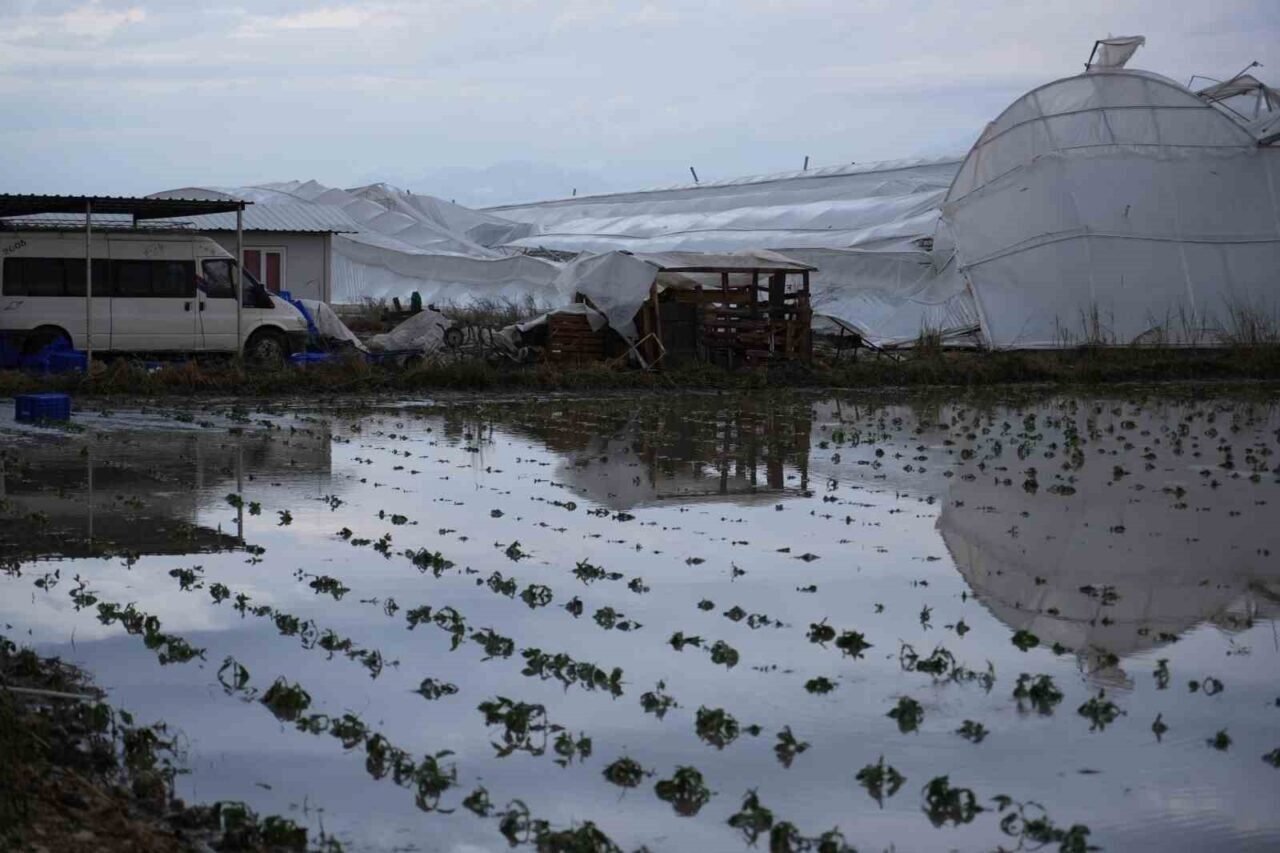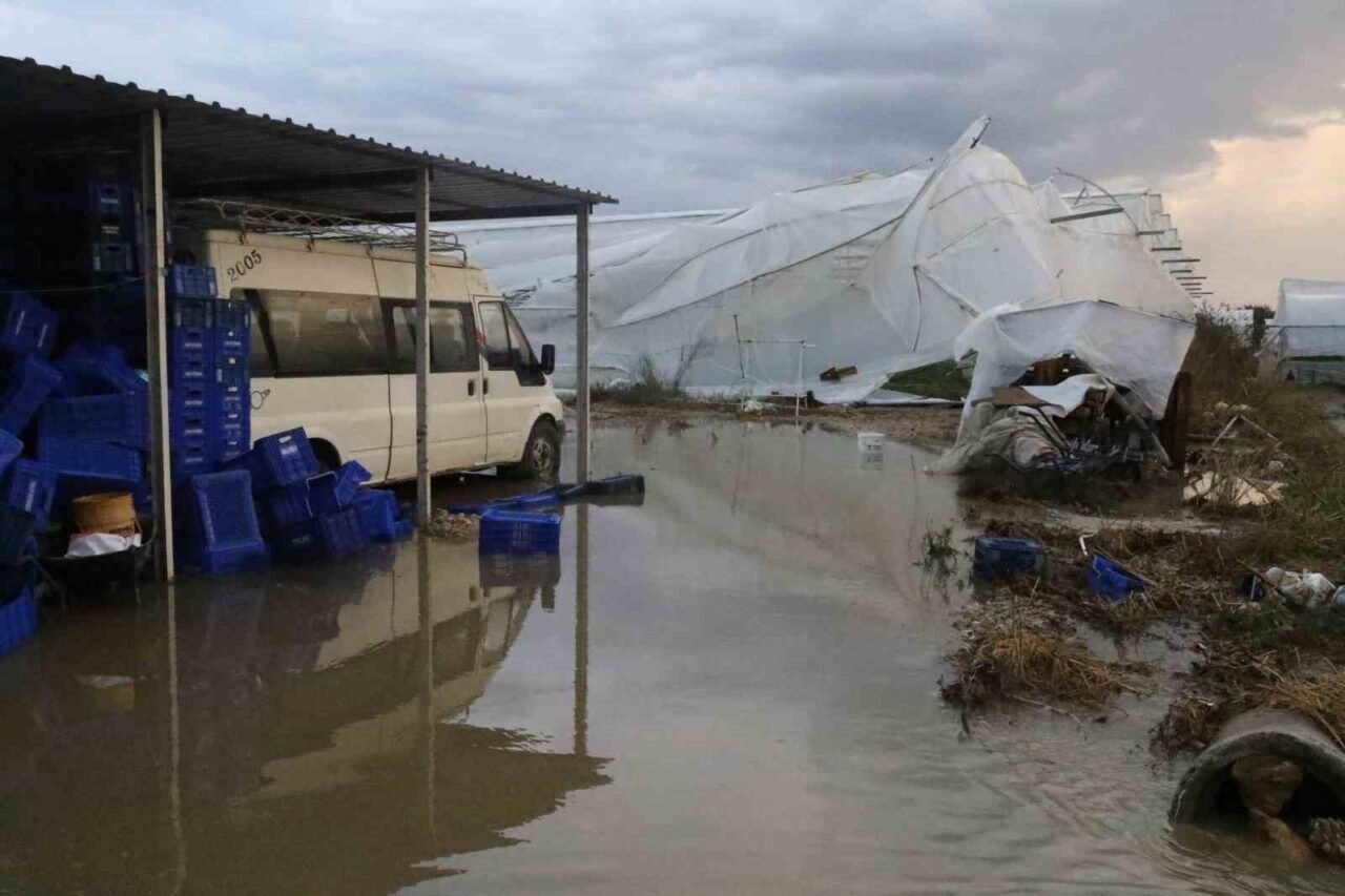 Sağanakla birlikte kısa süreli etkili olan dolu, çok sayıda serada hasara yol açtı. Rüzgar nedeniyle bazı seraların çatısı uçarken, seralardaki ürünler de zarar gördü.