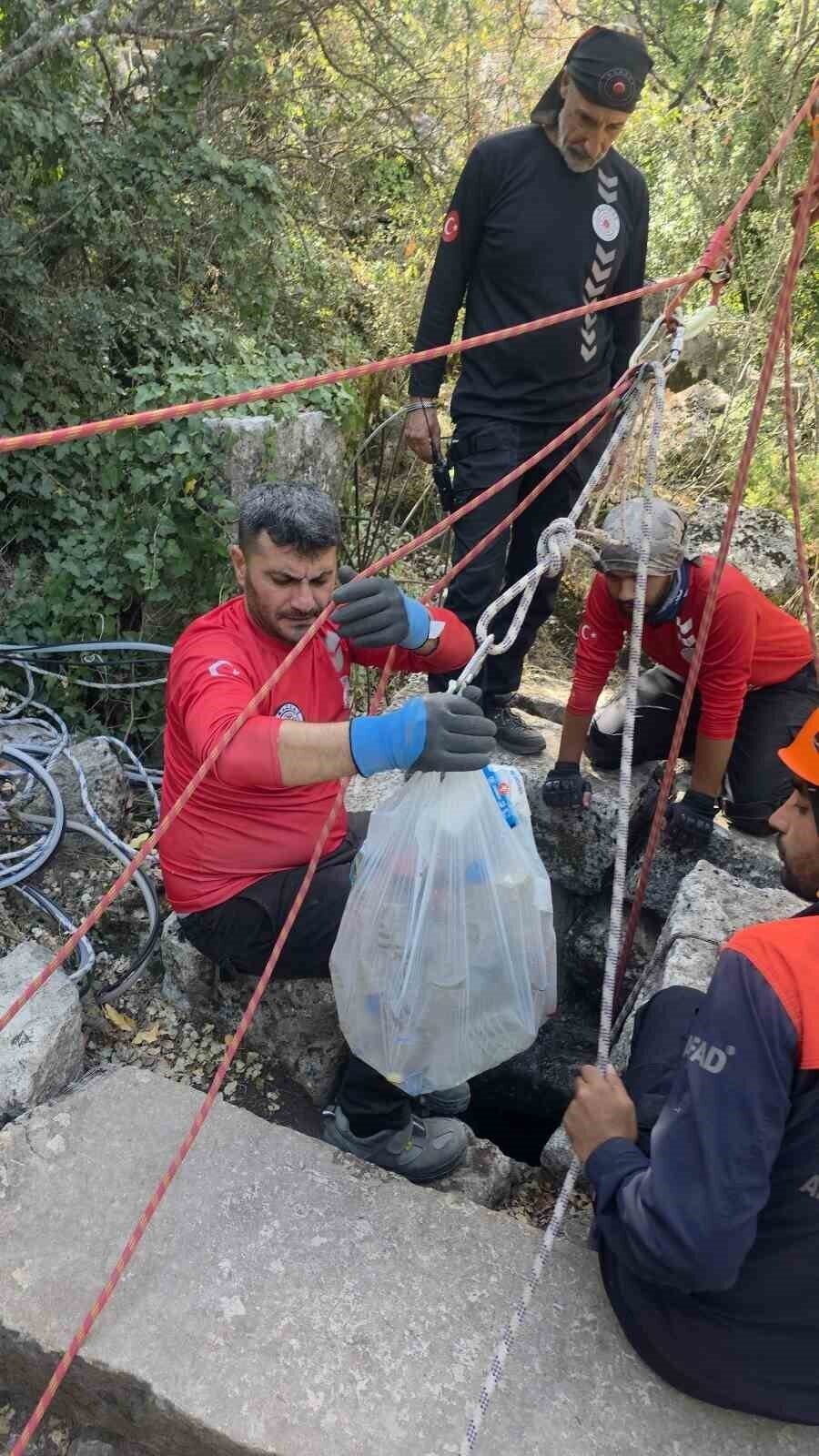 Antalya’da su kuyusu ve sarnıçlarda çöp topladılar