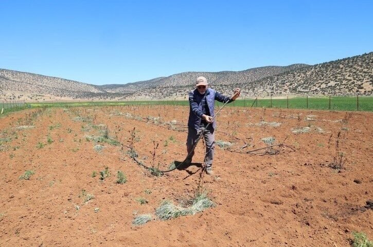 Eşiyle birlikte Beğiş Susuzu’na yerleşerek aronya yetiştirmeye başlayan Tahsin Çelik, “Emekli olduktan sonra şehir hayatında dört duvar arasında kalarak yaşamanın bize göre olmadığına karar vererek eşimle birlikte bu güzel mahalleye yerleşme kararı aldık. Burayı tercih etme nedenimiz o dönemde Muhittin Böcek Başkanımızın bu bölgeye sulama suyu projesini duyurması olmuştu. Eski bir köy evini satın alarak restore ettirdim ve yerleştim. Suyun bölgemize gelmesiyle de üretim faaliyetlerimize başladık. Sadece arpa ve buğday ekilen arazimize belediyemizin destekleriyle bir aronya bahçesi oluşturduk. Haftada iki kez suladığımız aronya fidanlarımız bu yıl ikinci yılında. Bu yıl ilk kez meyvesini almayı bekliyoruz. Bu köyde yaşayanlarda farklı ürünler yetiştirmeye başladı. Sebze, meyve ve bostan ekimleri artmaya başladı. Bu değişimin bölgeye büyük bir ekonomik katkı sunacağını düşünüyorum “dedi.
