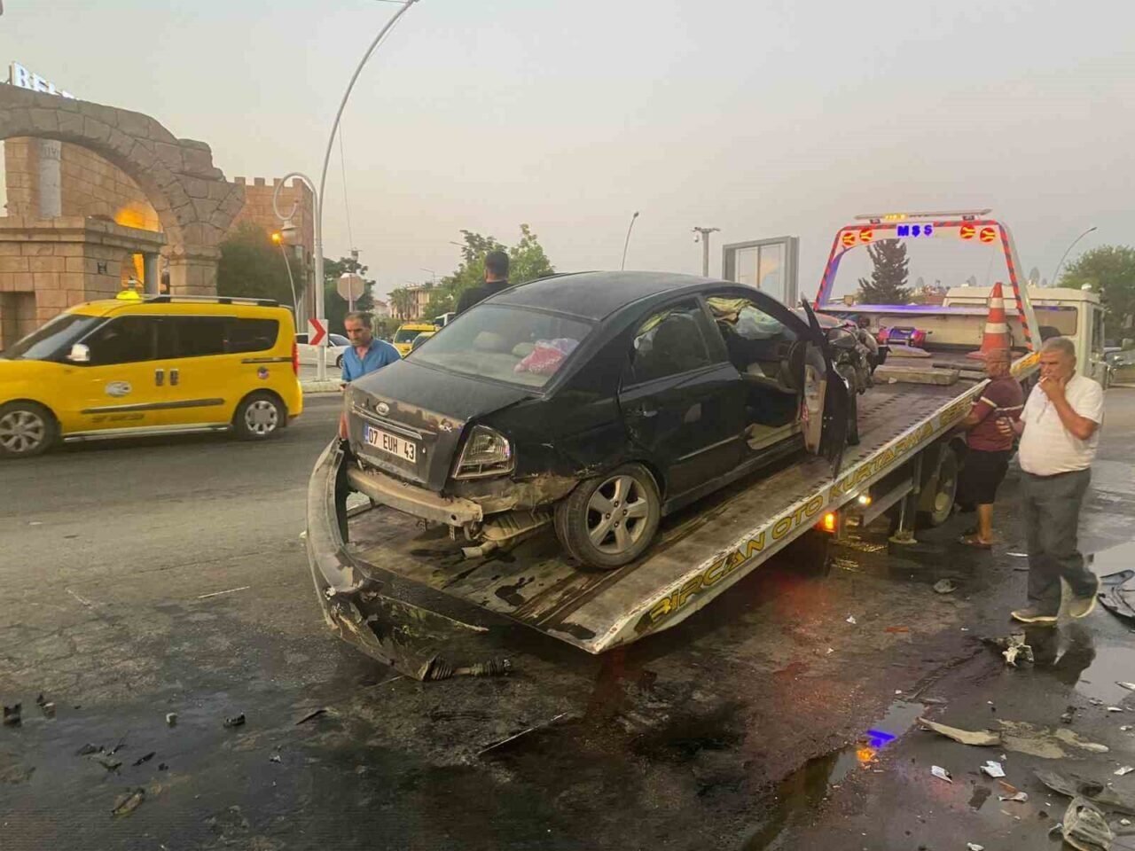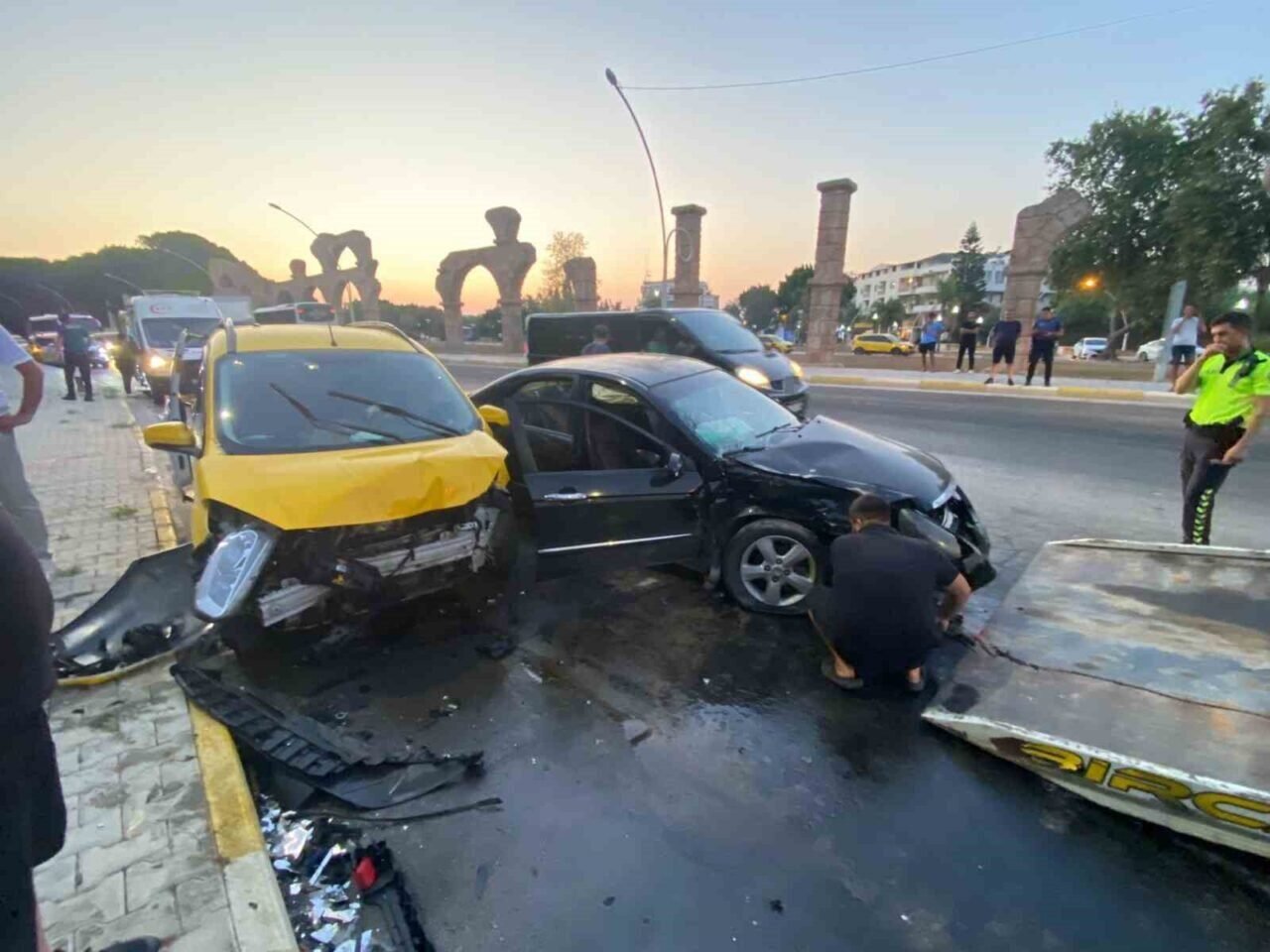 Antalya’da ticari taksi ile otomobil çarpıştı: 5’i turist 7 yaralı