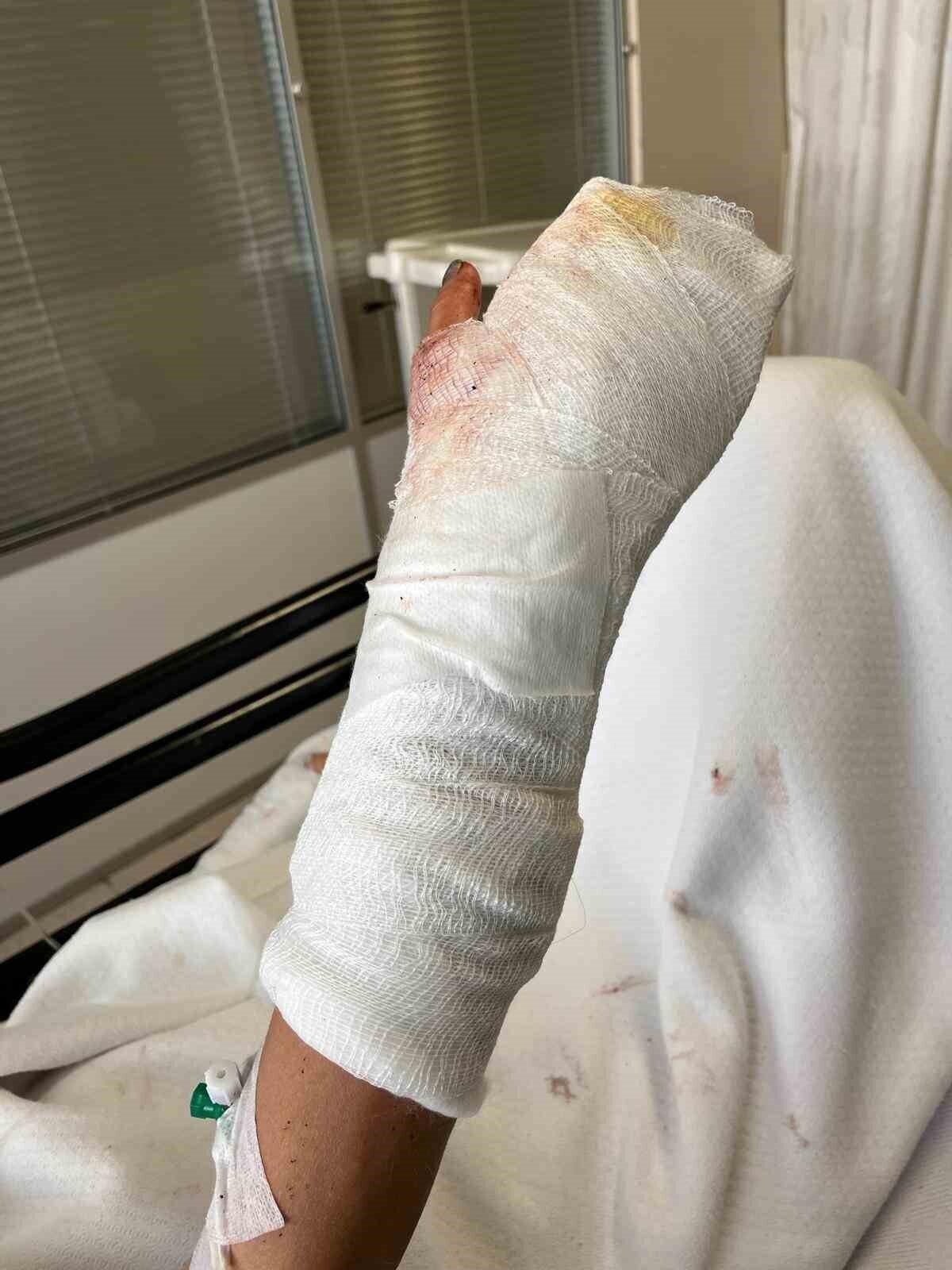 Saldırı sırasında elleriyle başını korumaya çalışan Iryna’nın sol elinde çok sayıda kırık oluştu. Kafatasında beyin kanaması riski taşıyan yaralanmalar nedeniyle Antalya Eğitim ve Araştırma Hastanesi’ne kaldırılan Iryna Melnychuk D., 16 gün boyunca hastanede tedavi gördü. Sol eline platin ve demir takılan, kafasında zımba dikişler atılan ve estetik müdahale gerektiren doku kayıpları oluşan Iryna Melnychuk D, halen tedavi görüyor.