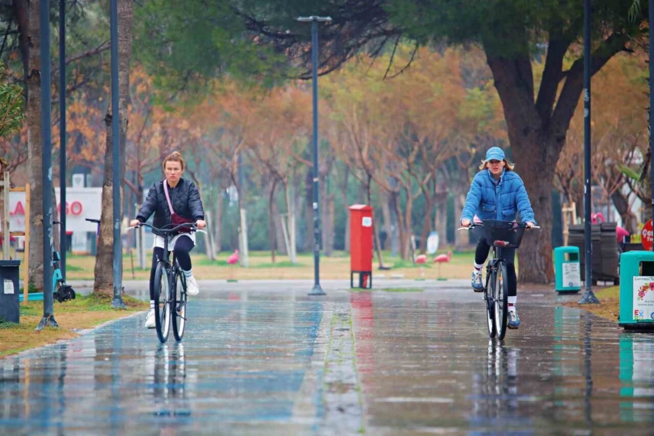 Antalya sabah saatlerinden itibaren yağışlı havanın etkisine girdi. Hava sıcaklığının 13 derece olarak ölçüldüğü kentte deniz suyu sıcaklığı ise 20 dereceyi gösterdi. Bölgesel olarak etkili olan yağışa rağmen Antalyalılar Konyaaltı Sahili’ne akın etti. Kimi vatandaşlar aileleri ve yakınlarıyla yürüyüş yaparak fotoğraf çekilmeyi tercih ederken, kimileri ise yanlarında getirdikleri oltalarla sahilde balık tuttu. Yabancı bir turistin ise ince ince yağan yağmura aldırış etmeden havadan daha sıcak olan denize girdiği görüldü.