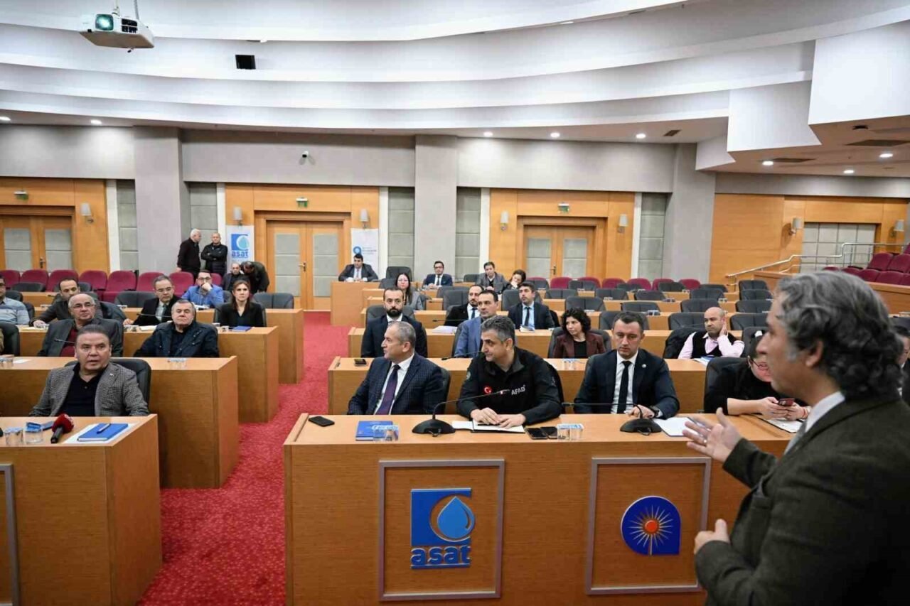 Toplantıda konuşan Başkan Muhittin Böcek, Antalya için kamu kurum ve kuruluşlarıyla işbirliği içinde çözüm üretmeye devam ettiklerini belirterek, “2025 yılı içinde ihale sürecini, 2026-2027 yıllarında ise diğer 14 ilçede master plan çalışmalarını tamamlamayı hedefliyoruz. Bu kapsamda 5 merkez ilçemizin tüm mahalle muhtarları ve belediye yöneticilerini ASAT Genel Müdürlüğümüze davet ederek süreci başlattık, sahada yapılan etütlerle envanterler oluşturuldu” dedi.