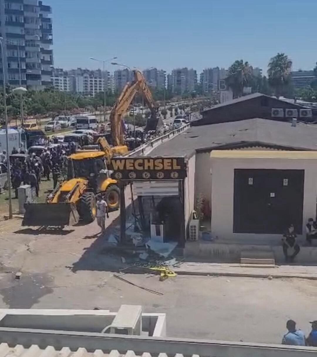 Yıkım esnasında ekipler ile dükkan sahipleri arasında gerginlik yaşandı. Bazı esnaf ve çalışanlar, belediye ekiplerine tepki göstererek yıkımı durdurmak için işyerlerinin çatılarına çıkıp iş makinelerine müdahalede bulunmak istedi. Çevik kuvvet ve TOMA müdahalesi sonrası belirlenen yapıların yıkımı gerçekleştirildi.