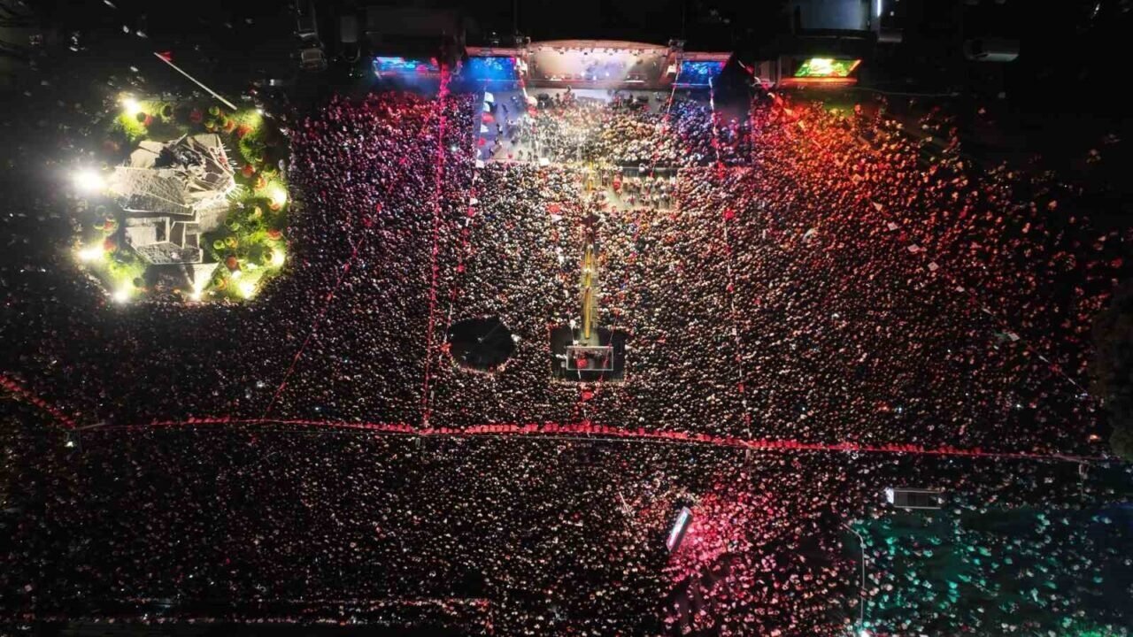 Saatler öncesinden Cumhuriyet Meydanı’nı dolduran binlerce Antalyalı, fener alayına katılan vatandaşları ve protokolü alkışlarla karşıladı. Çoğunluğu gençlerden oluşan coşkulu kalabalık DJ performansı ile eğlendi. Saygı duruşu ve İstiklal Marşı’nın okunmasının ardından sahneye çıkan Büyükşehir Belediye Başkanı Muhittin Böcek, elinde Türk bayrağı ile alanı dolduran Antalyalıları selamladı.
