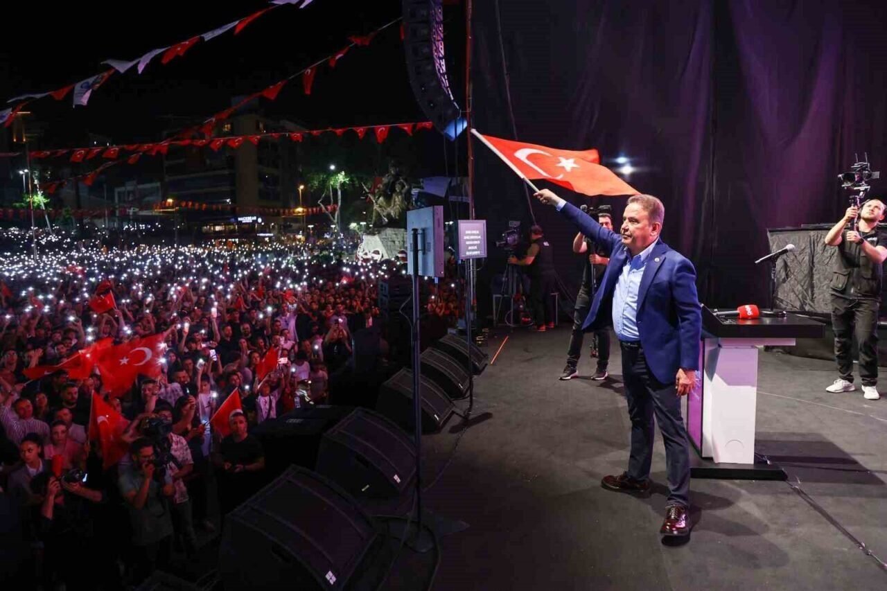 Başkan Böcek’in konuşmasının ardından CHP İl Başkanı Nail Kamacı, milletvekilleri, Cumhuriyet İçin Antalya El Ele Platformu Üyeleri, Atatürkçü Düşünce Derneği Antalya Şube Başkanı İbrahim Daş, Türk bayraklarıyla sahneye çıkarak Antalyalıları coşkuyla selamladı. Coşkulu gece Ceza konseri ile devam etti. Ceza, en güzel şarkılarını Antalyalılar ve gençler için seslendirdi.