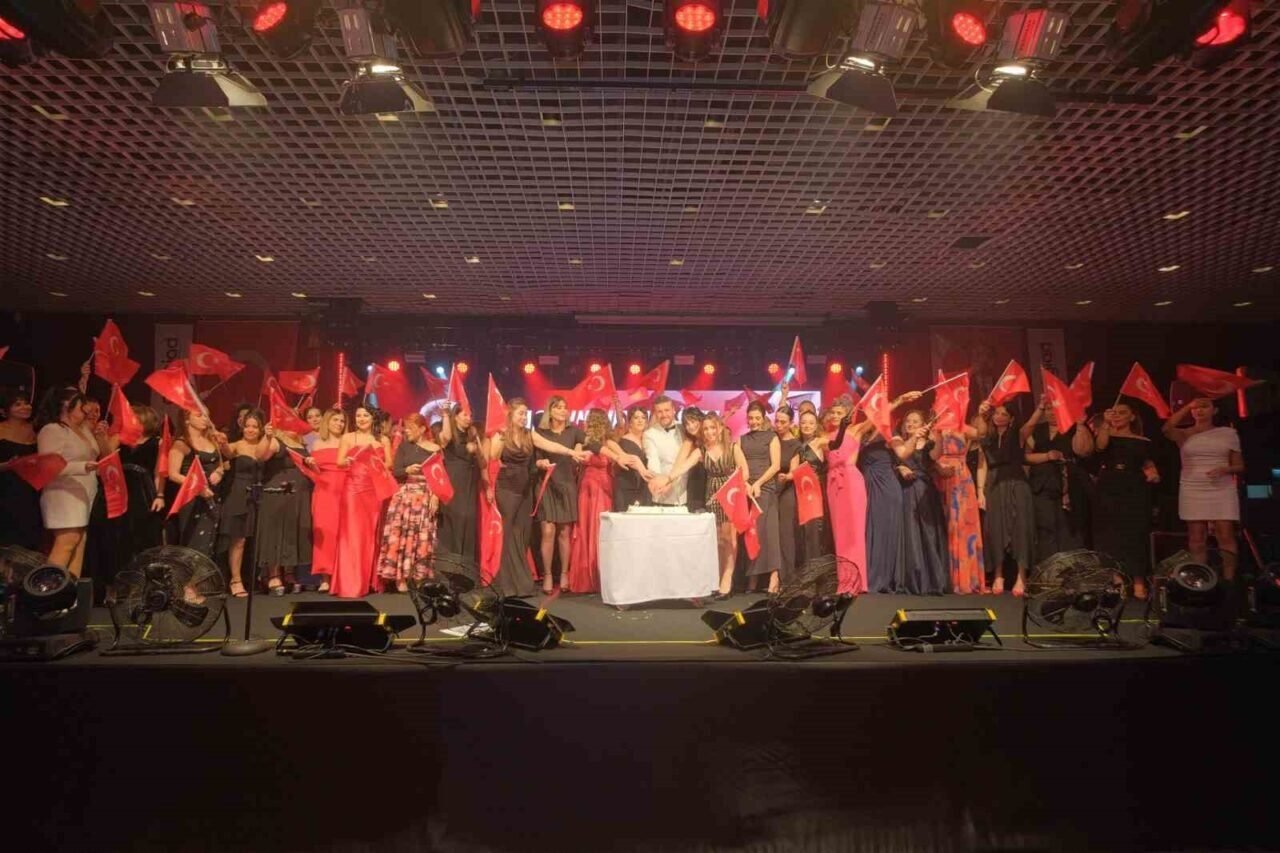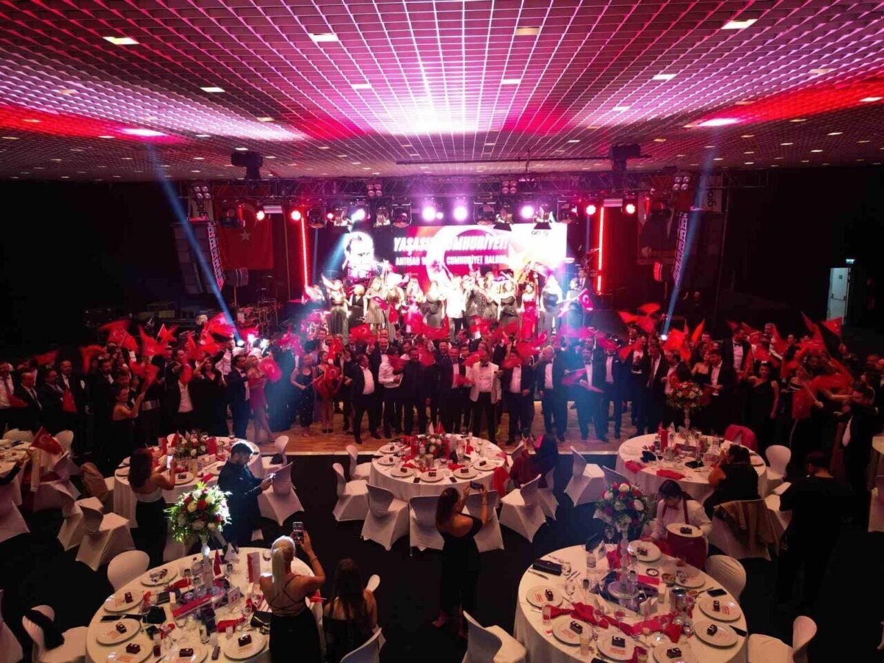 Bir otelde düzenlenen geleneksel Cumhuriyet Balosu, iş dünyası, sivil toplum temsilcileri ve çok sayıda seçkin davetlinin katılımıyla gerçekleşti. Gecede ünlü sanatçı Derya Uluğ sahne aldı ve konuklara unutulmaz bir müzik şöleni yaşattı. Katılımcılar Türk bayraklarıyla marşlar söyledi, salonda Cumhuriyet’in ışıltısı ve Atatürk sevgisi yankılandı.