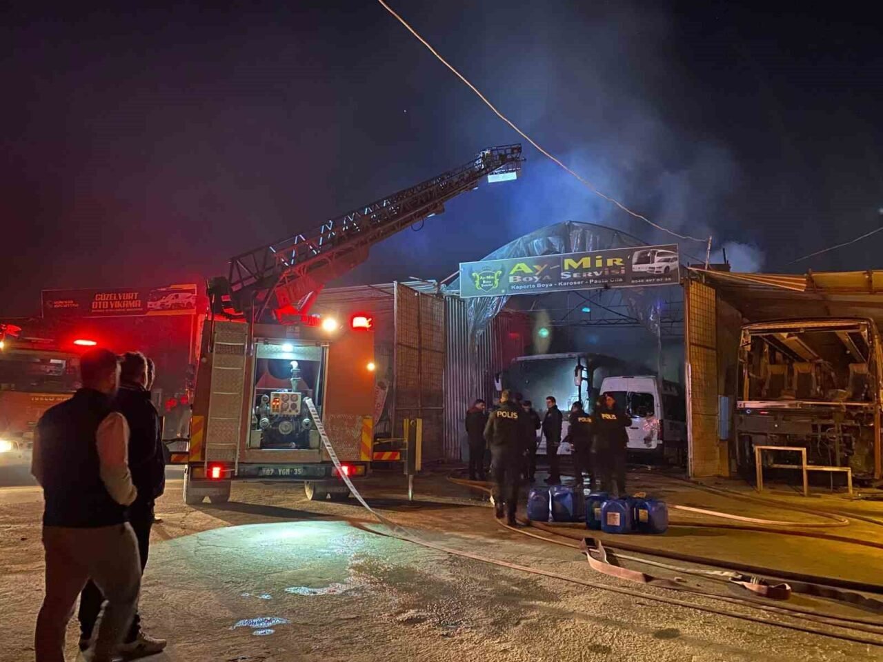Güzelyurt Mahallesi Şehit Komando Er Mustafa Göktürk Caddesi üzerindeki araç boyama atölyesinde saat 22.00 sıralarında henüz bilinmeyen bir nedenden ötürü yangın çıktı. Çevredekilerin ihbarı üzerine olay yerine çok sayıda itfaiye, polis ve sağlık ekibi sevk edildi. Belirtilen adrese gelen ekipler, boya ve yanıcı maddelerden dolayı patlamaların meydana geldiği yangını söndürebilmek için uzun uğraşlar verdi. Yaklaşık 2 saatlik çalışma sonucu yangın söndürülürken, iş yeri ve alevlerin sıçradığı otobüs, minibüs ve bir otomobil küle döndü.