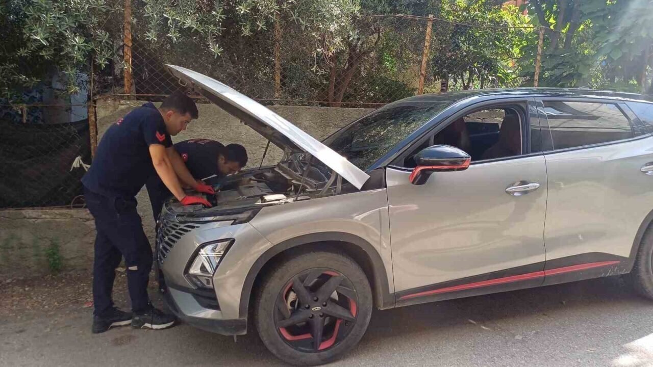 Adana’da bir otomobilin motor kısmına sıkışan yavru kedi, itfaiye ekiplerinin