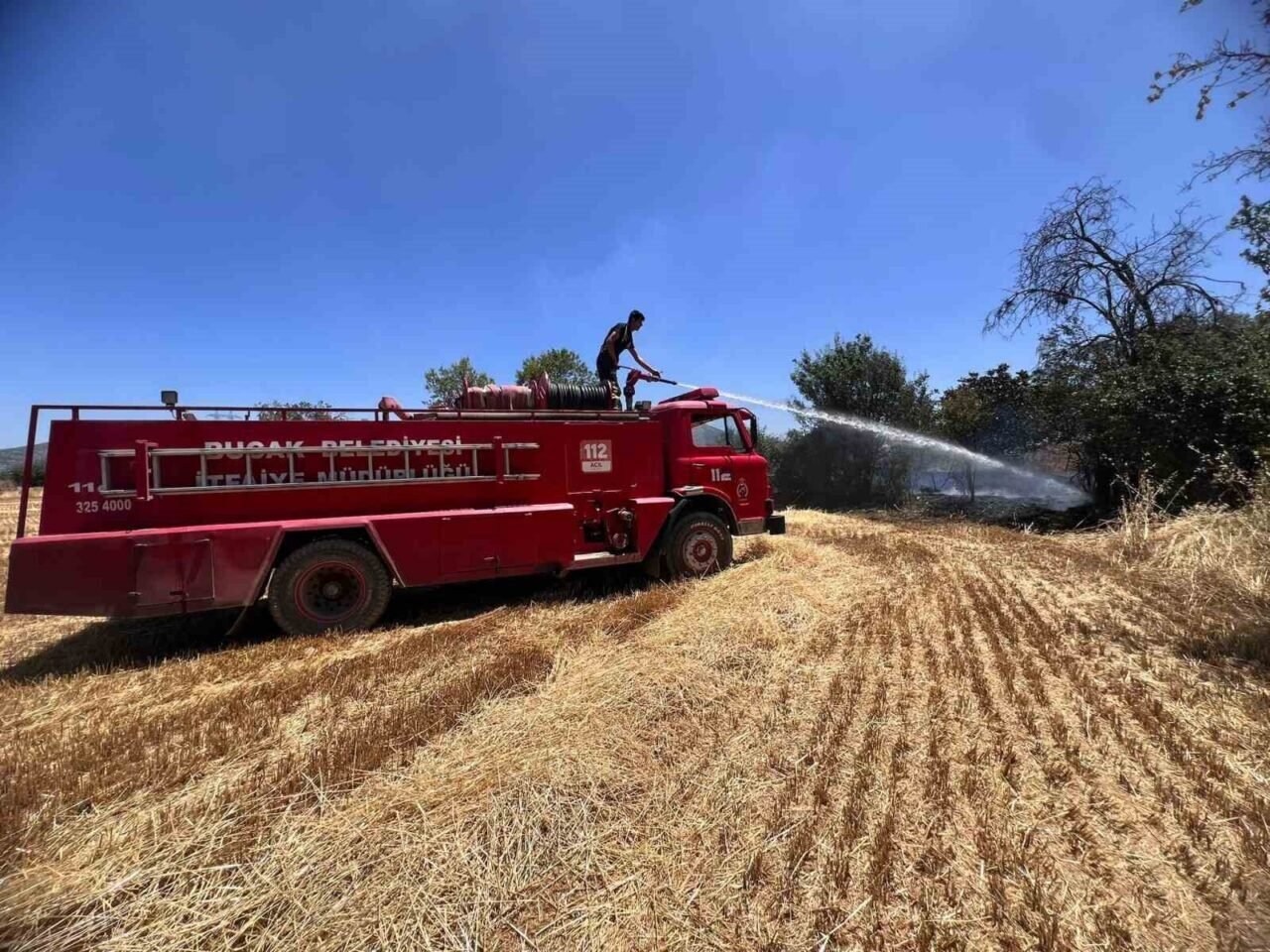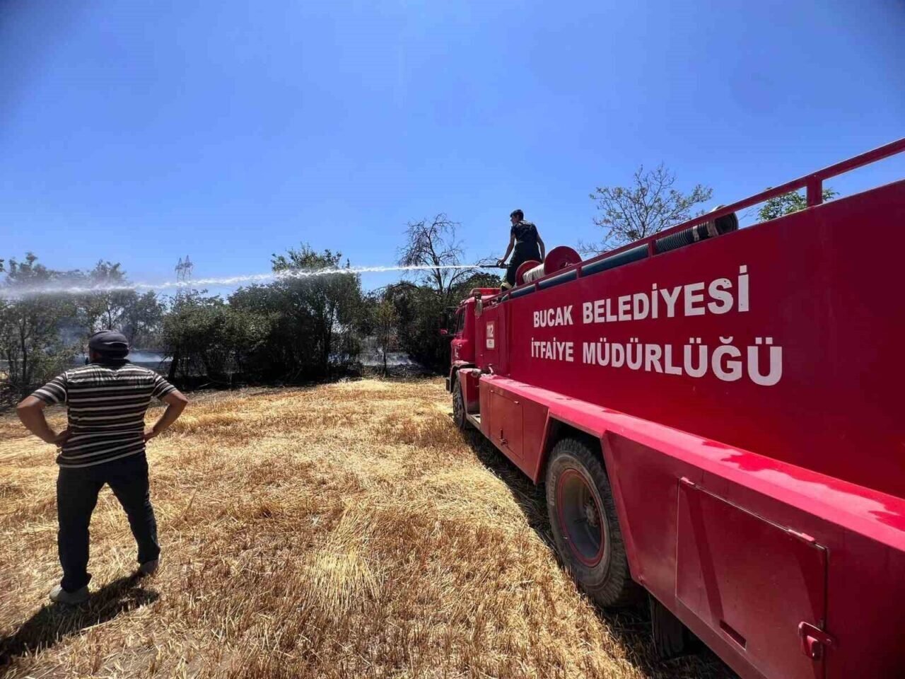 Olay yerine ulaşan Bucak Belediyesi itfaiye ekiplerinin yoğun müdahalesi sonucu yangın kontrol altına alınarak söndürüldü. Yangında geniş bir alana yayılan ekin tarlası da zarar gördü.