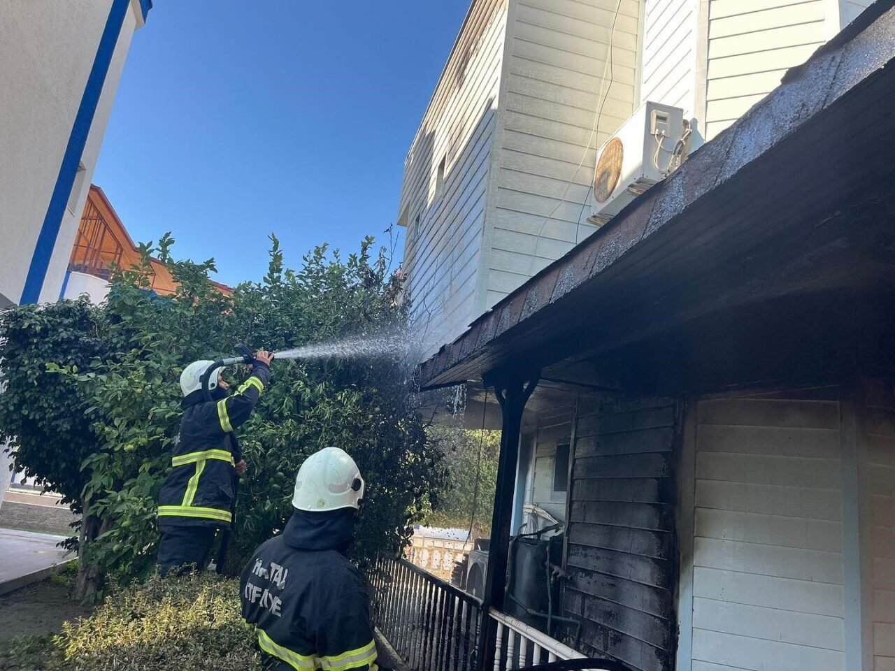 Hatay’da 2 katlı bir evin çatı kısmında çıkan yangın, evi sarmadan söndürüldü.