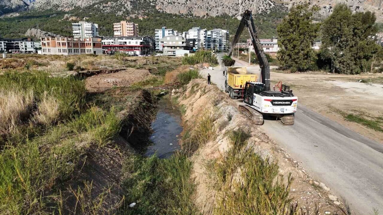 Özellikle yoğun yağış dönemlerinde yağmur sularının denize tahliyesini sağlayan açık kanallarda biriken otlar, sazlıklar, ağaç dalları, çamur ve katı atıklar iş makineleri ve budama ekipleriyle temizleniyor. Bu çalışmalarla hem kötü koku ve haşere oluşumu önleniyor hem de muhtemel taşkın risklerine karşı önlem alınıyor.