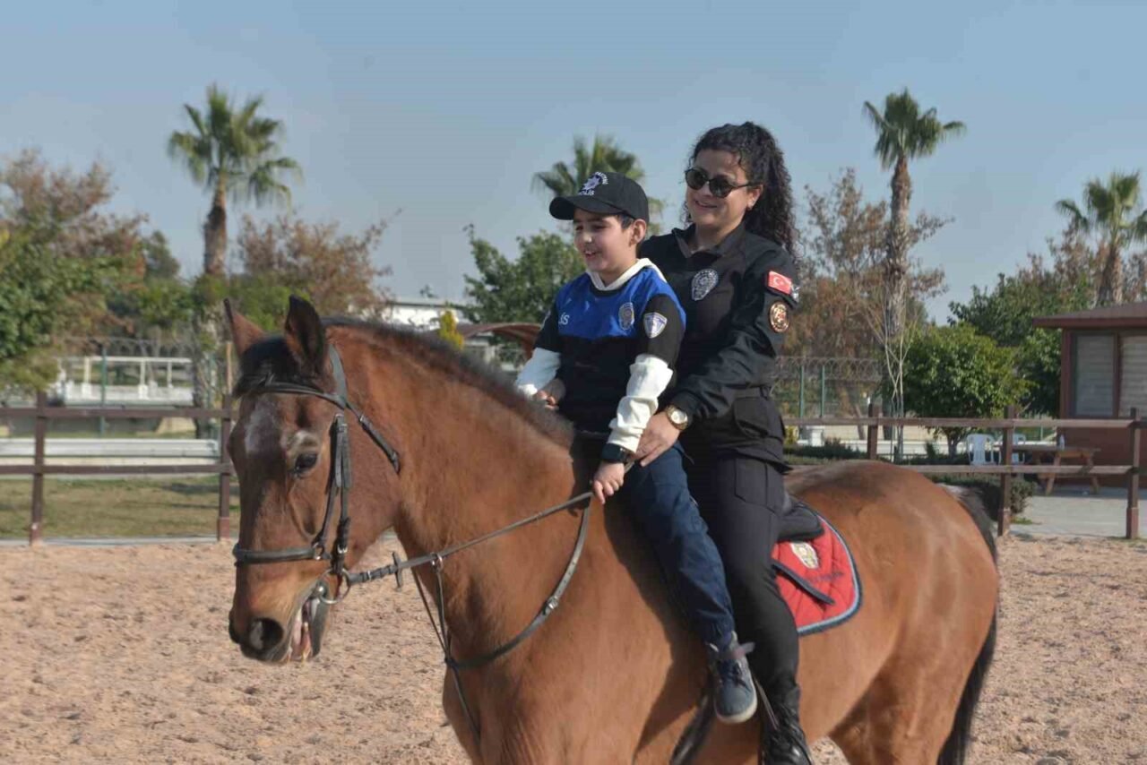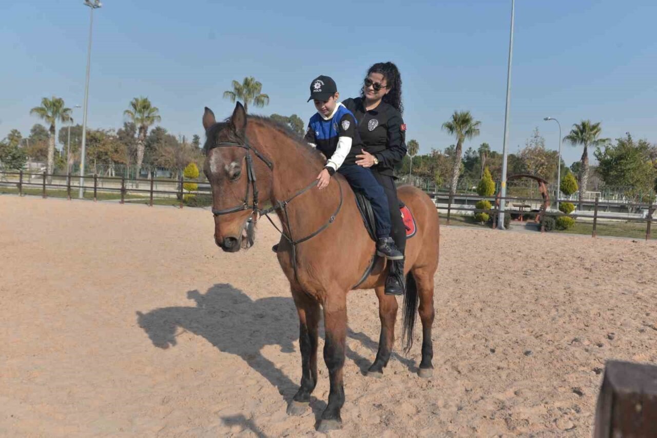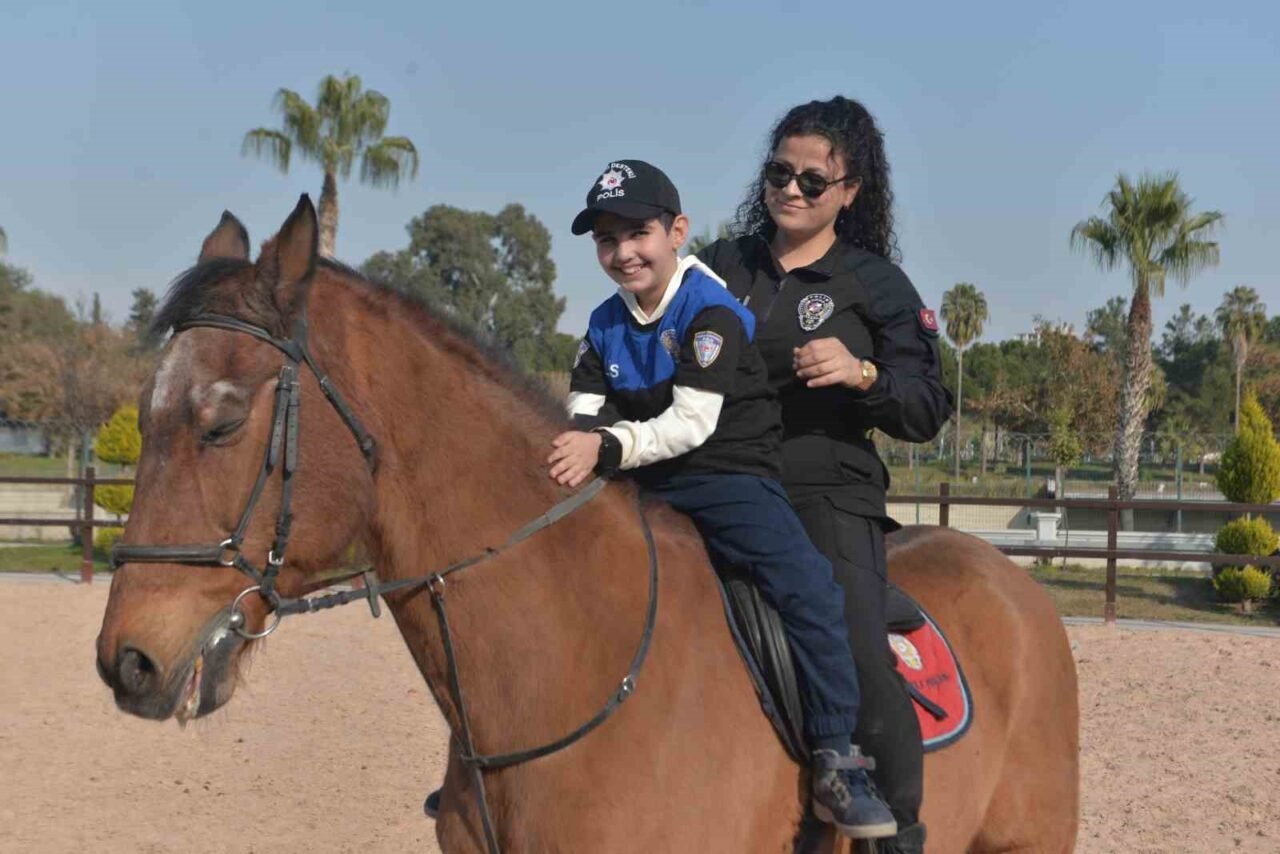 Adana’da ilkokul ikinci sınıf öğrencisi Poyraz atlı polis olma hayaliyle polisleri ve kendisini atın üzerinde çizdi. Adana polisi Poyraz’ın bu hayalini gerçeğe dönüştürerek üniforma giydirip ata bindirip unutmayacağı bir an yaşattı.