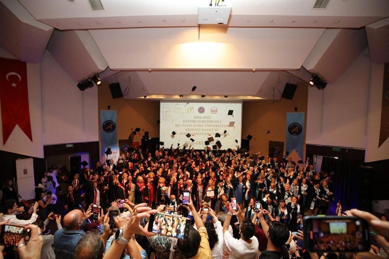 Akdeniz Üniversitesi 60+ Tazelenme Üniversitesinde dördüncü dönem mezuniyet töreni geniş katılımla gerçekleştirildi. Atatürk Konferans Salonunda düzenlenen mezuniyet törenine Akdeniz Üniversitesi Rektörü Prof. Dr. Özlenen Özkan, Rektör Yardımcıları Prof. Dr. Ayşe Gülbin Arıcı, Prof. Dr. Cengiz Toker, Prof. Dr. Şükrü Özen, Antalya Aile ve Sosyal Hizmetler İl Müdürü Galip Sökmen, Sağlık Bilimleri Fakültesi Dekanı Prof. Dr. Aygen Yılmaz, Tazelenme Üniversitesi Kurucusu Prof. Dr. İsmail Tufan, Yaşlılık Çalışmaları Araştırma ve Uygulama Merkez Müdürü (YAÇUMER) Prof. Dr. Gülüşan Özgün Başıbüyük, öğretim üyeleri, çok sayıda öğrenci ile yakınları katıldı.