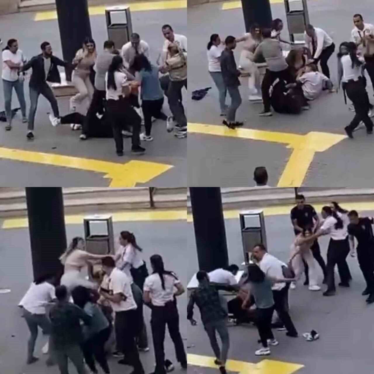 Mersin’de bulunan Forum Alış Veriş Merkezi önünde, kadınlardan oluşan iki grubun tekme tokat kavgası cep telefonu kamerasına yansıdı.