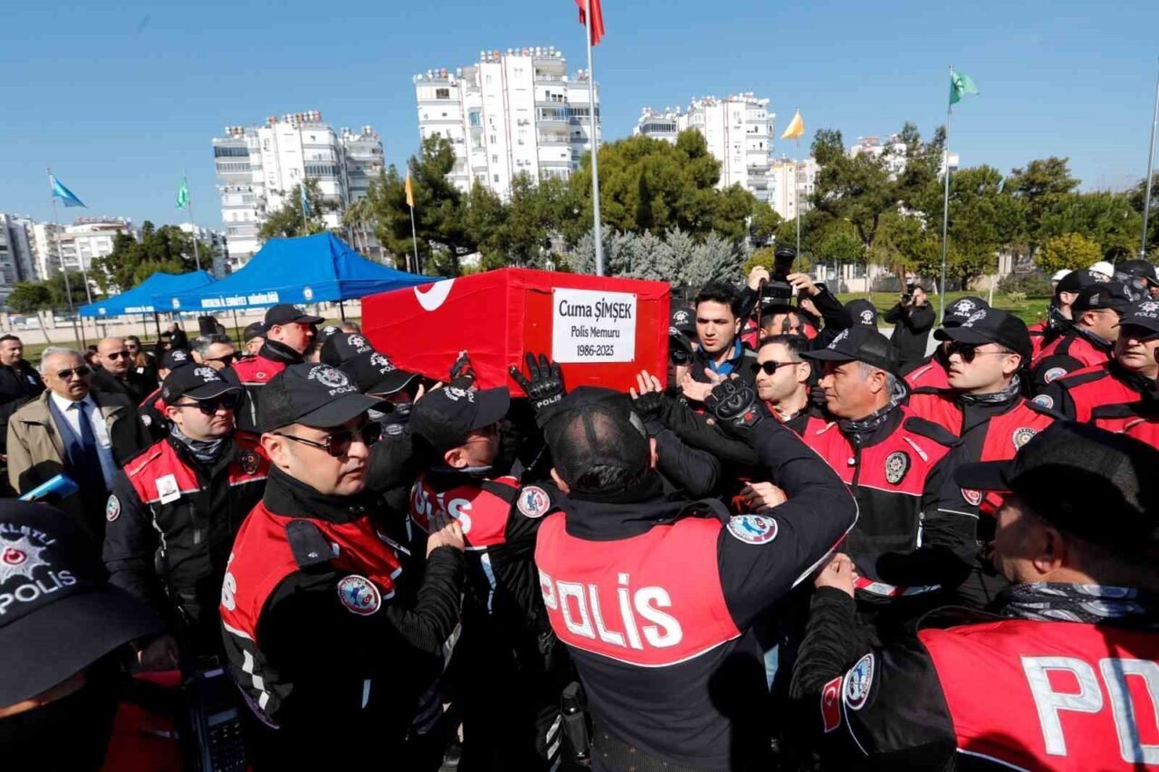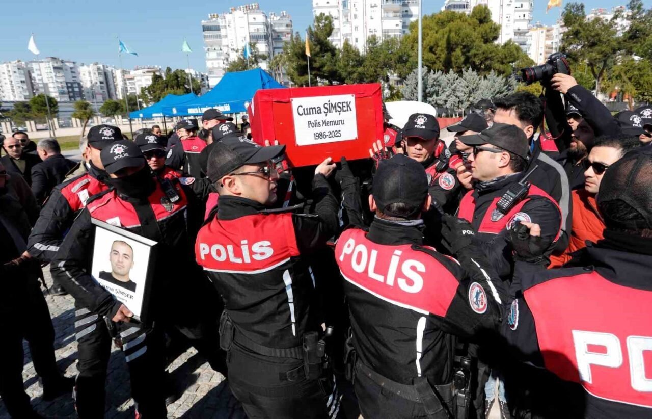 Antalya’da dün geçirdiği trafik kazasında olay yerinde hayatını kaybeden polis memuru Cuma Şimşek, Antalya Emniyet Müdürlüğü’nde düzenlenen törenle birlikte görev yaptığı meslektaşlarının omuzlarında son yolculuğuna uğurlandı.
