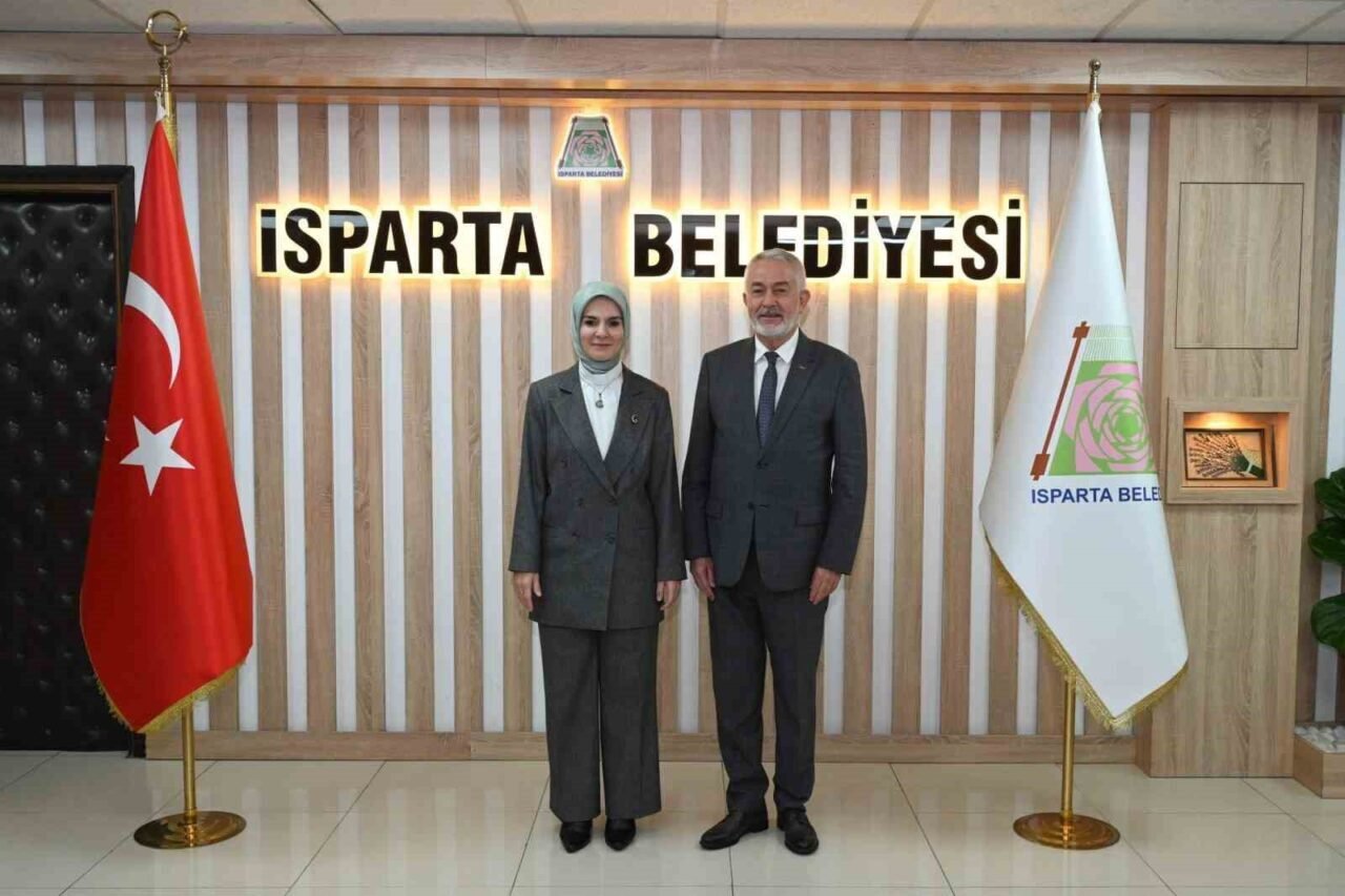 Bir dizi ziyaretlerde bulunmak üzere Isparta’ya gelen Aile ve Sosyal Hizmetler Bakanı Mahinur Özdemir Göktaş, Belediye Başkanı Şükrü Başdeğirmen’i ziyaret etti. Ziyarete Vali Abdullah Erin, AK Parti İl Başkanı Furkan Cem Er, AK Parti Milletvekilleri Mehmet Uğur Gökgöz, Osman Zabun, AK Parti Gençlik Kolları Başkanı Halil İbrahim Öz, AK Parti Kadın Kolları Başkanı Dilek Gündüz, Aile ve Sosyal Hizmetler İl Müdürü Hüseyin Güçlü, belediye meclis üyeleri ve parti teşkilat mensupları katıldı.