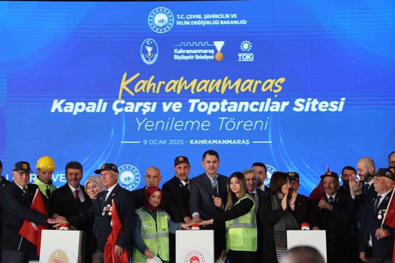 Çevre, Şehircilik ve İklim Değişikliği Bakanı Kurum, Kahramanmaraş’ta Kapalı Çarşı ve Toptancılar Sitesi’nin temel atma törenine katıldı. Depremden büyük zarar gören Kapalı Çarşı ve çevresindeki diğer tarihi çarşıların yenilenmesine dair müjdeler veren Bakan Kurum, Kahramanmaraş’ın tarihi ve ticari dokusunu yeniden canlandırmayı hedeflediklerini belirtti. Kurum, yaptığı konuşmada deprem sonrası Kahramanmaraş’ta büyük bir inşa süreci başlatıldığını vurguladı. Kapalı Çarşı’da 140 dükkan ve 122 tescilli kültür varlığının restorasyon çalışmalarının başladığını söyleyen Kurum, “Bugün verdiğimiz sözlerden birini daha tutmanın mutluluğunu yaşıyoruz. Maraş’ın tarihine, kültürüne ve insanına yakışır bir çarşıyı yeniden inşa ediyoruz” dedi.