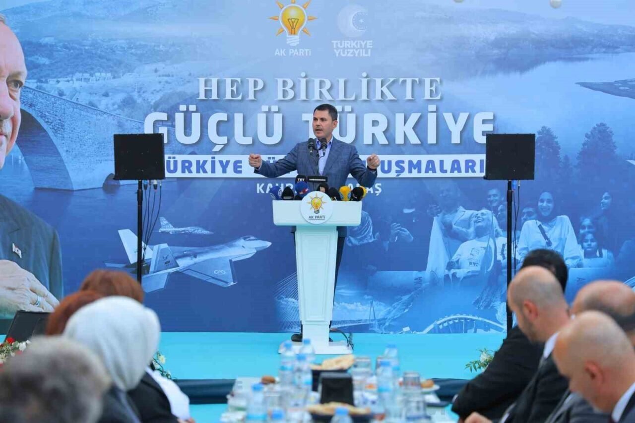 Kahramanmaraş’ta sivil toplum kuruluşu temsilcileriyle bir araya gelen Çevre, Şehircilik ve İklim Değişikliği Bakanı Murat Kurum, 6 Şubat depremleri sonrası yürütülen çalışmaları ve yatırımları anlattı. Konuşmasında Kahramanmaraş’ın her karış toprağının imanla mücadele eden kahramanların hatırasını taşıdığını vurgulayan Kurum, “Bugün de aynı ruhla Cumhurbaşkanımız Recep Tayyip Erdoğan’ın yanında dimdik duran ve Türkiye Yüzyılı vizyonuna gönülden sahip çıkan yiğit insanların şehri olmuştur. Emin olun bunu Kahramanmaraş’ın her sokağında, her mahallesinde hissedebilirsiniz. İşte bu yüzden siz kıymetli Maraşlı kardeşlerimizle kucaklaşmanın eşsiz mutluluğunu yaşıyoruz ve sizlerle gurur duyuyoruz” dedi.